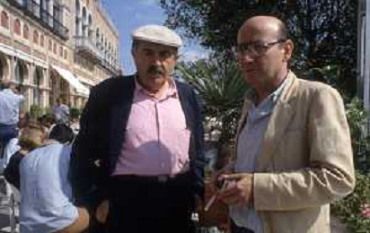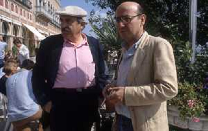 DIA- RETROSPETTIVA TONINO GUERRA POETA E SCRITTORE NELLA FOTO TONINO GUERRA CON IL REGISTA THEO ANGELOPOULOS A VENEZIA NELL’ANNO 1986 AG ALDO LIVERANI SAS