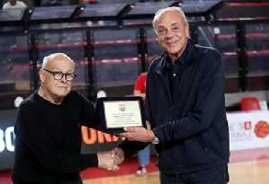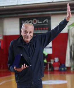 IMOLA 14 11 2024 ANDREA COSTA BASKET-VICENZA SERIE B NELLA FOTO PREMIAZIONE DUE LEGENDE DELL'ANDREA COSTA BASKET FRANCO CREMONINI E BOB RAVAGLIA ©SANNA - AGENZIA ALDO LIVERANI SAS