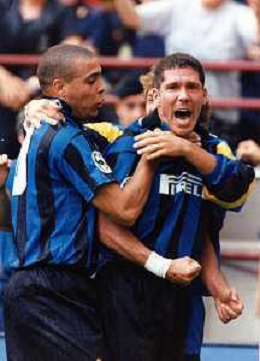 RETROSPETTIVA DIEGO PABLO SIMEONE CALCIATORE NELLA FOTO DIEGO PABLO SIMEONE DELL’INTER CALCIO - ESULTANZA CON RONALDO AG ALDO LIVERANI SAS