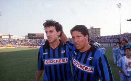 DIA-RETROSPETTIVA DIEGO PABLO SIMEONE CALCIATORE NELLA FOTO DIEGO PABLO SIMEONE CON LA MAGLIA DEL PISA CALCIO NELL’ANNO 1990-1991 CON LAMBERTO PIOVANELLI AG ALDO LIVERANI SAS