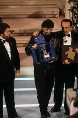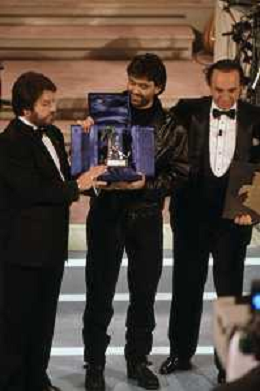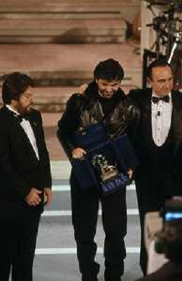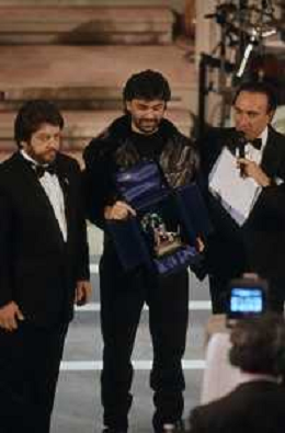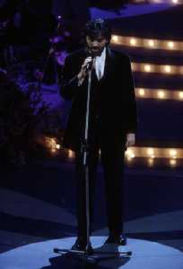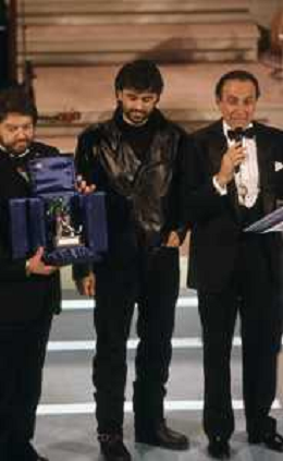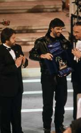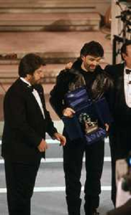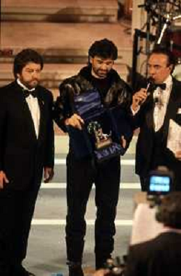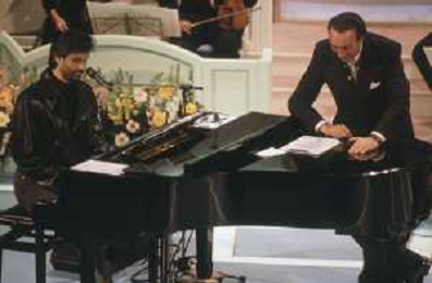 DIAP-RETROSPETTIVA ANDREA BOCELLI CANTANTE NELLA FOTO ANDREA BOCELLI AL FESTIVAL DI SANREMO GIOVANI NELL'ANNO 1994 CON PIPPO BAUDO AG ALDO LIVERANI SAS