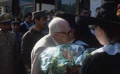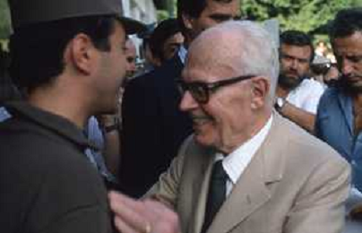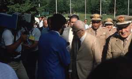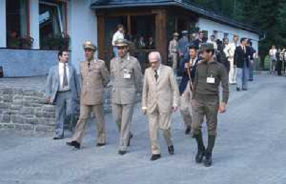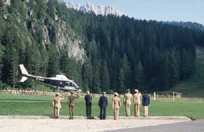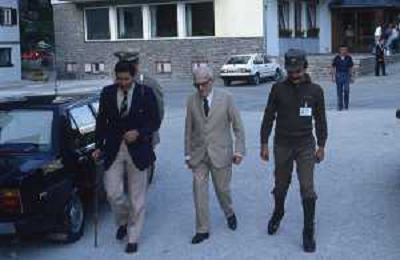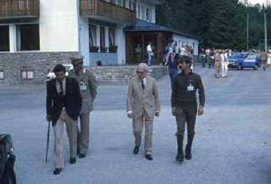 DIAP-RETROSPETTIVA SANDRO PERTINI POLITICO E PRESIDENTE DELLA REPUBBLICA ITALIANA NELLA FOTO SANDRO PERTINI AL SUO ARRIVO IN VAL GARDENA NELL'ANNO 1979 AG ALDO LIVERANI SAS