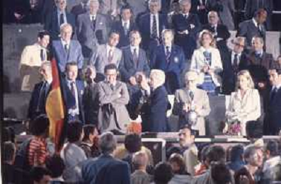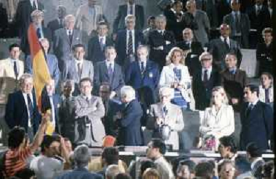 DIAP-RETROSPETTIVA SANDRO PERTINI POLITICO E PRESIDENTE DELLA REPUBBLICA ITALIANA NELLA FOTO SANDRO PERTINI CON PAOLA DI LIEGI ALLA FINALE DEGLI EUROPEI DI CALCIO A ROMA NELL'ANNO 1980 AG ALDO LIVERANI SAS