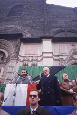 DIAP-RETROSPETTIVA SANDRO PERTINI POLITICO E PRESIDENTE DELLA REPUBBLICA ITALIANA NELLA FOTO SANDRO PERTINI A BOLOGNA NELL'ANNO 1984 AI FUNERALI DELLE VITTIME DELLA STRAGE DEL TRENO 904 AG ALDO LIVERANI SAS