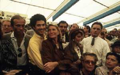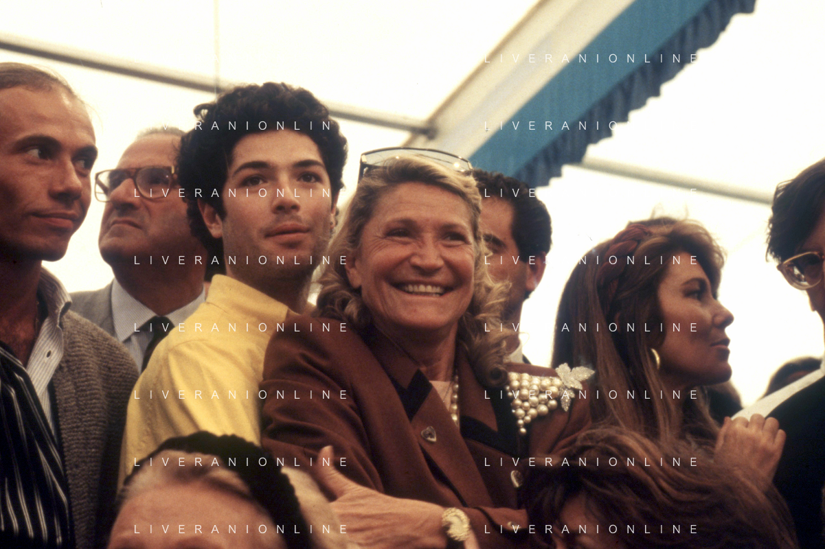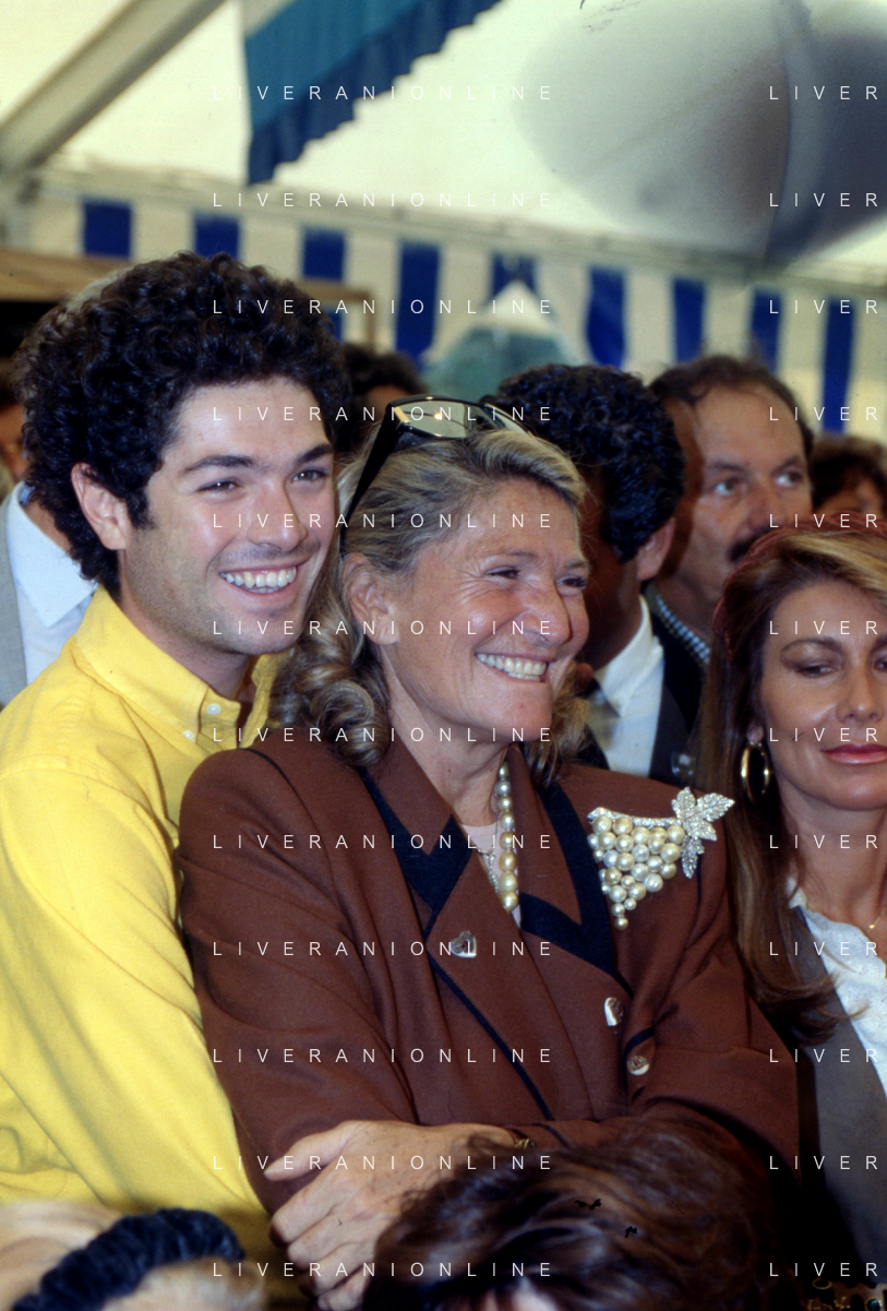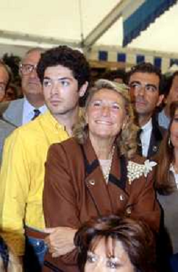DIA-RETROSPETTIVA MARTA VACONDIO CONTESSA MARZOTTO NELLA FOTO MARTA MARZOTTO CON IL FIGLIO MATTEO E VITTORIO SGARBI NELL’ANNO 1990 AG ALDO LIVERANI SAS