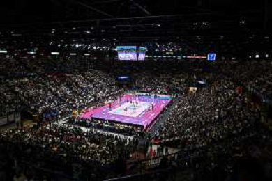 TVRG Milano vs Conegliano nella foto panoramica Unipol Foruim Assago (MI) 22-11-2024 Unipol Forum Numia Vero Volley Milano vs Prosecco DOC Imoco Conegliano Serie A1 Tigota’ - 9a giornata foto Roberto Garavaglia/Agenzia Aldo Liverani sas