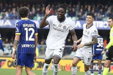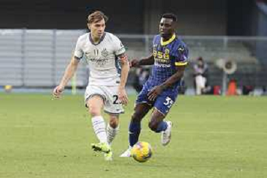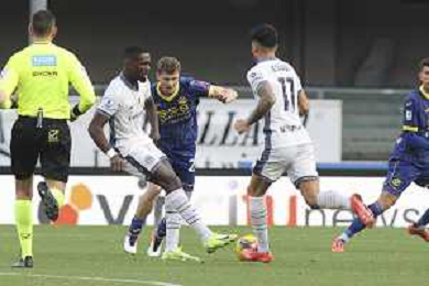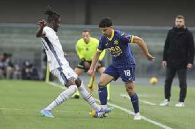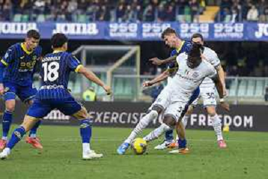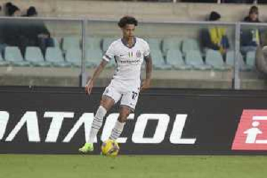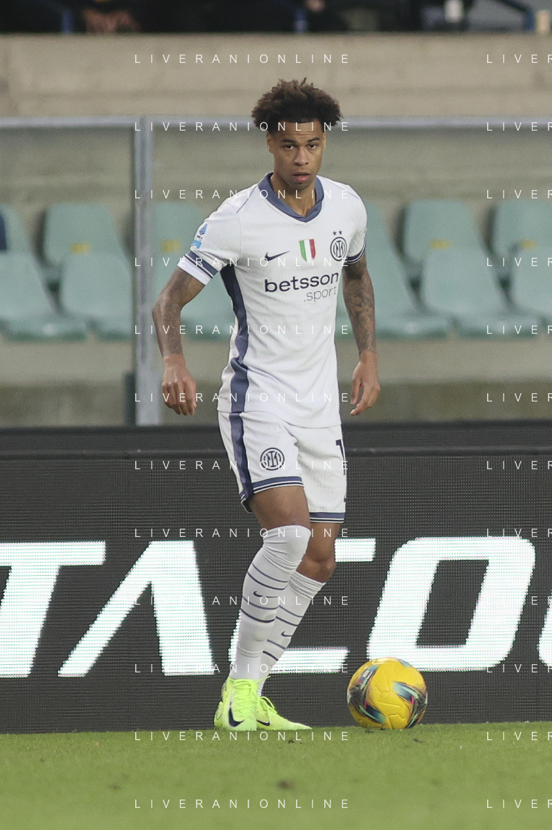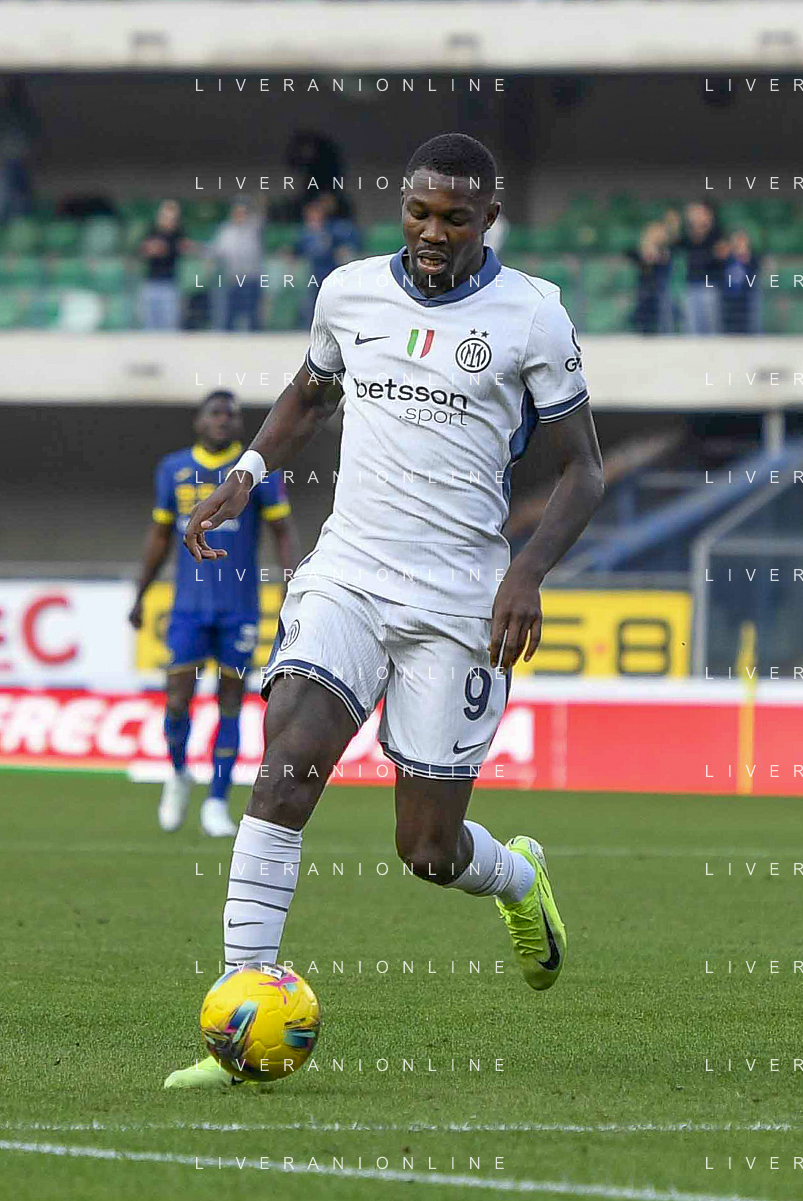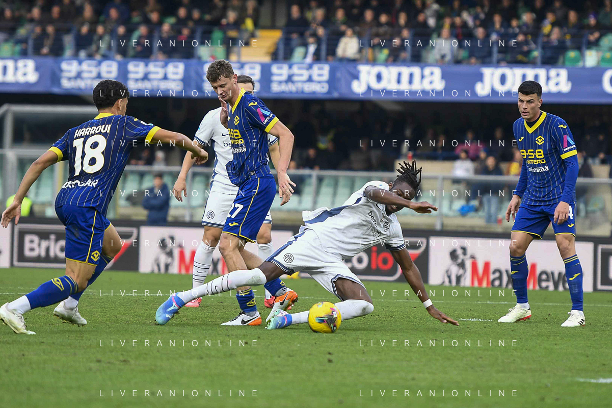 Tajon Buchanan of Inter FC play the ball during Hellas Verona FC vs Inter FC, 13° Serie A Enilive 2024-25 game at Marcantonio Bentegodi stadium in Verona (VR), Italy, on November 23, 2024. (Photo by Davide Casentini)- AGENZIA ALDO LIVERANI SAS