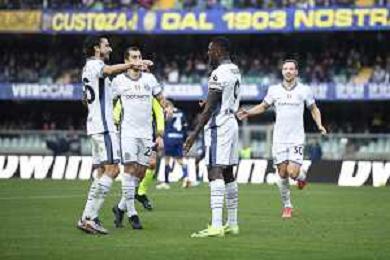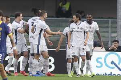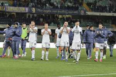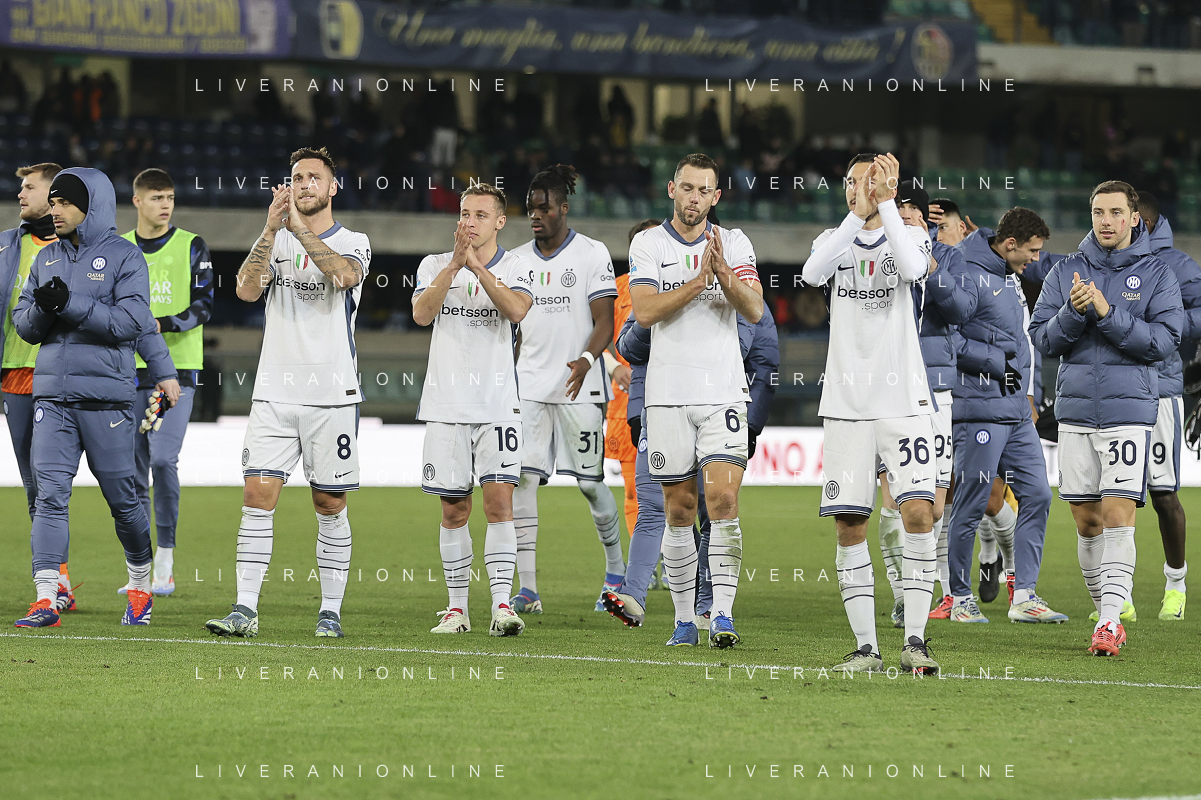 inter players applaud the fans following the final whistle during Hellas Verona FC vs Inter FC, 13° Serie A Enilive 2024-25 game at Marcantonio Bentegodi stadium in Verona (VR), Italy, on November 23, 2024. (Photo by Davide Casentini)- AGENZIA ALDO LIVERANI SAS
