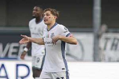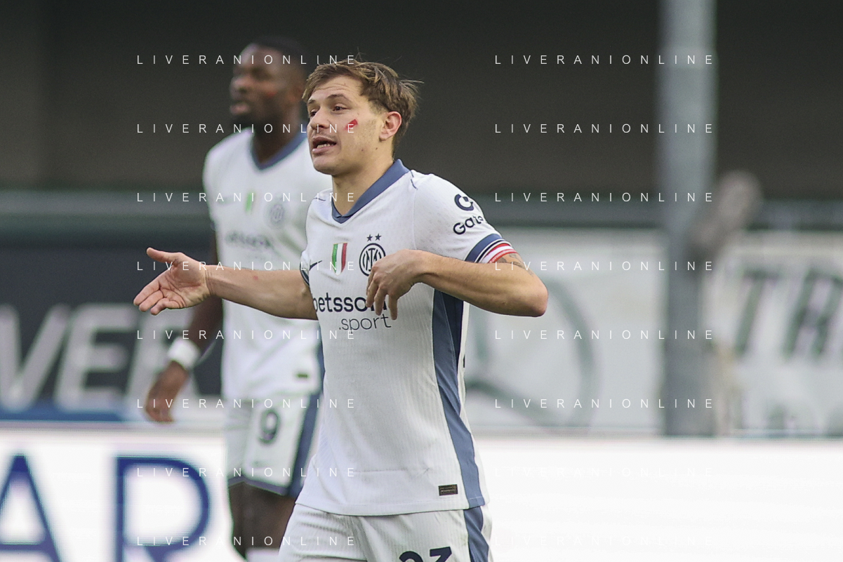 Nicolo’ Barella of Inter FC gestures during Hellas Verona FC vs Inter FC, 13° Serie A Enilive 2024-25 game at Marcantonio Bentegodi stadium in Verona (VR), Italy, on November 23, 2024. (Photo by Davide Casentini)- AGENZIA ALDO LIVERANI SAS