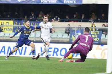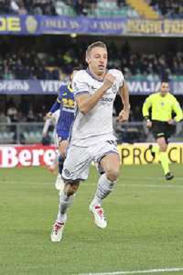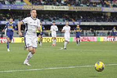 Marko Arnautovic of Inter FC play the ball during Hellas Verona FC vs Inter FC, 13° Serie A Enilive 2024-25 game at Marcantonio Bentegodi stadium in Verona (VR), Italy, on November 23, 2024. (Photo by Davide Casentini)- AGENZIA ALDO LIVERANI SAS