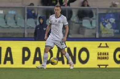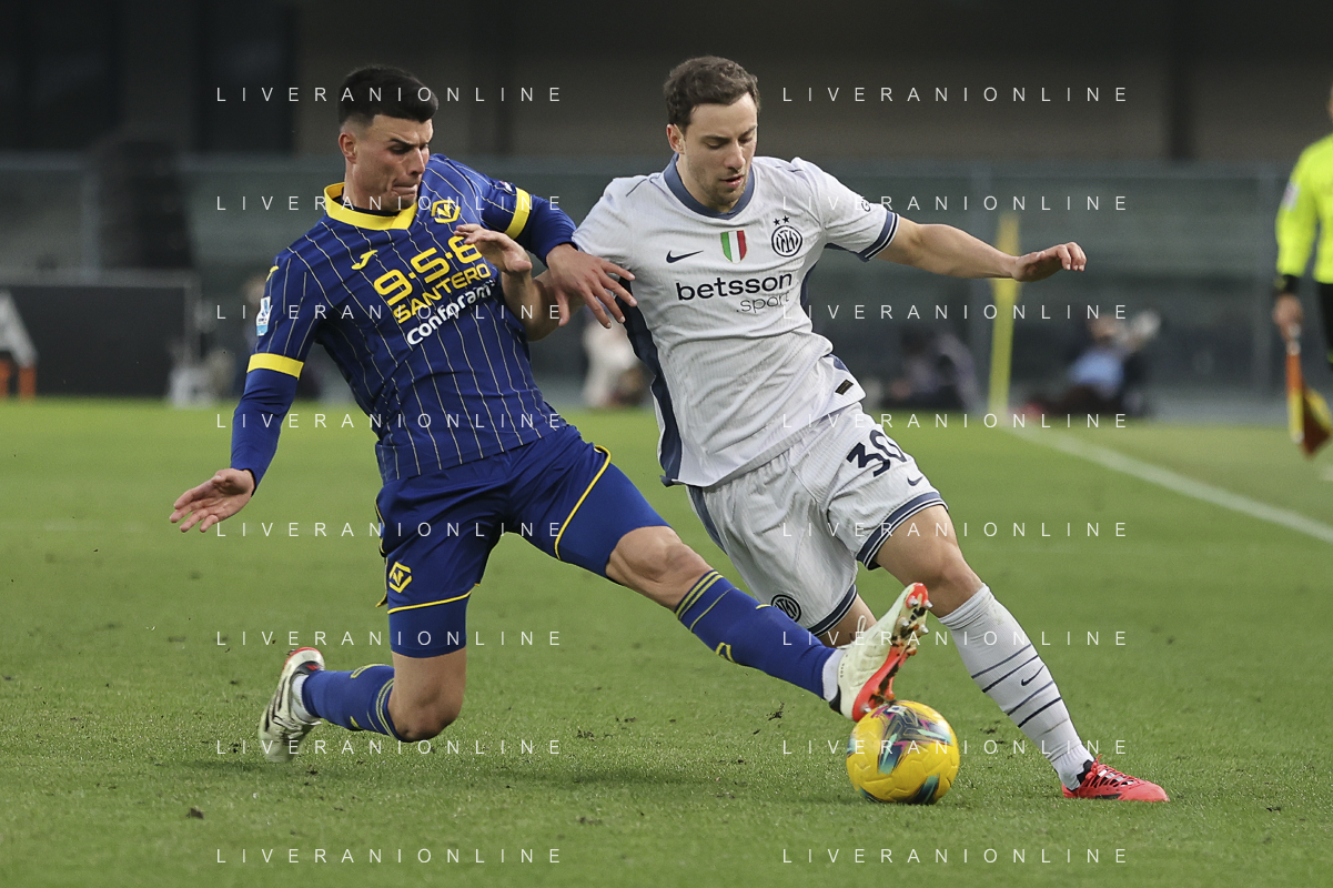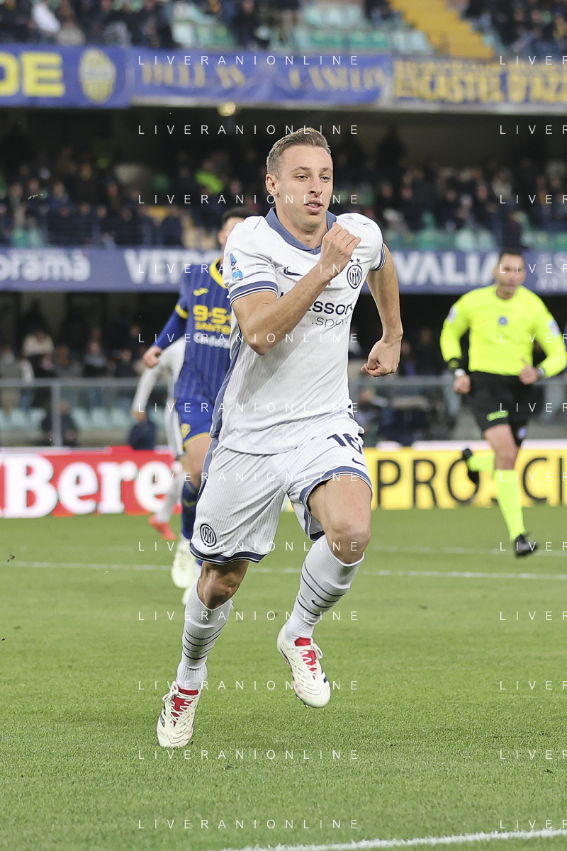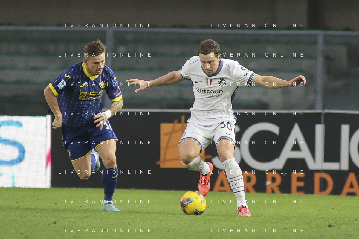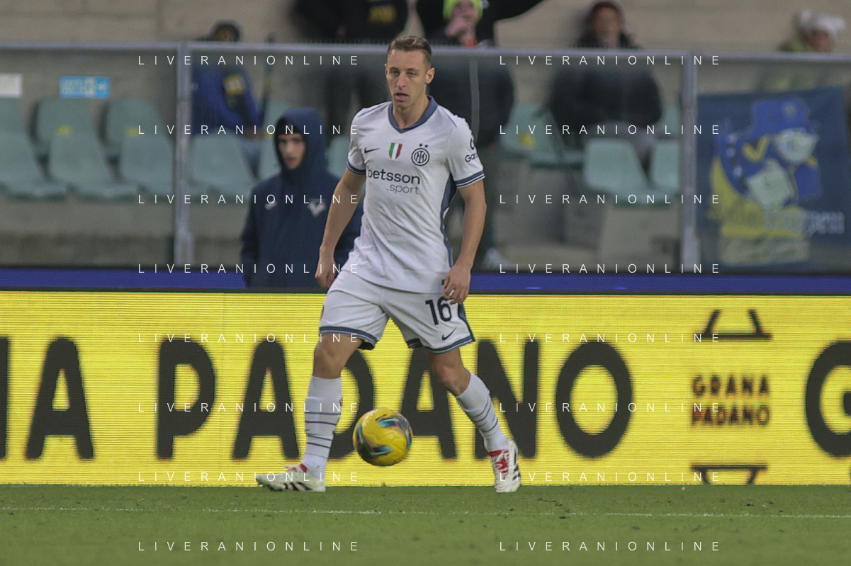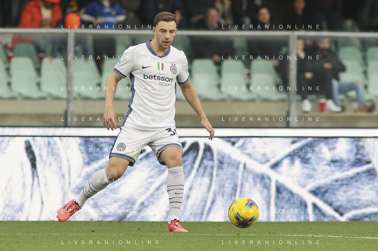 Davide Frattesi of Inter FC play the ball during Hellas Verona FC vs Inter FC, 13° Serie A Enilive 2024-25 game at Marcantonio Bentegodi stadium in Verona (VR), Italy, on November 23, 2024. (Photo by Davide Casentini)- AGENZIA ALDO LIVERANI SAS