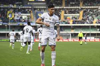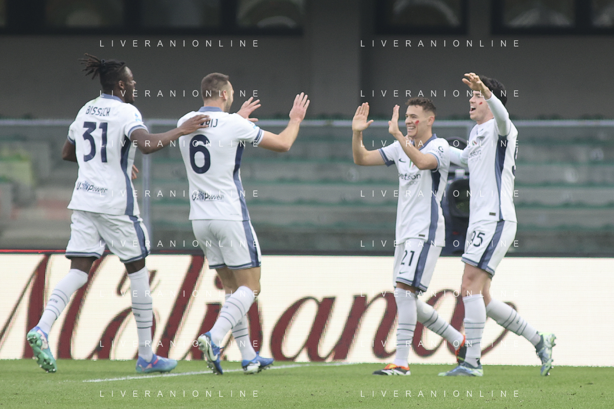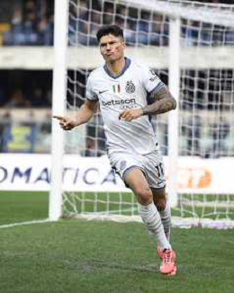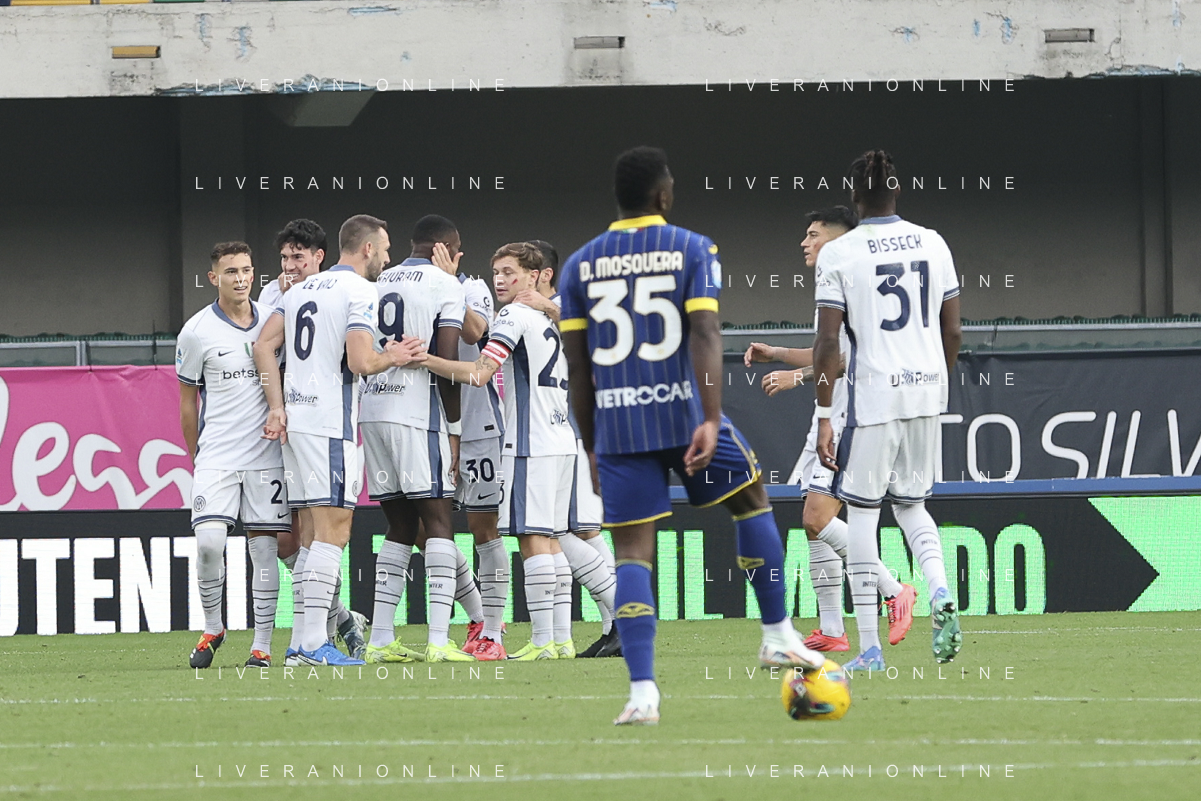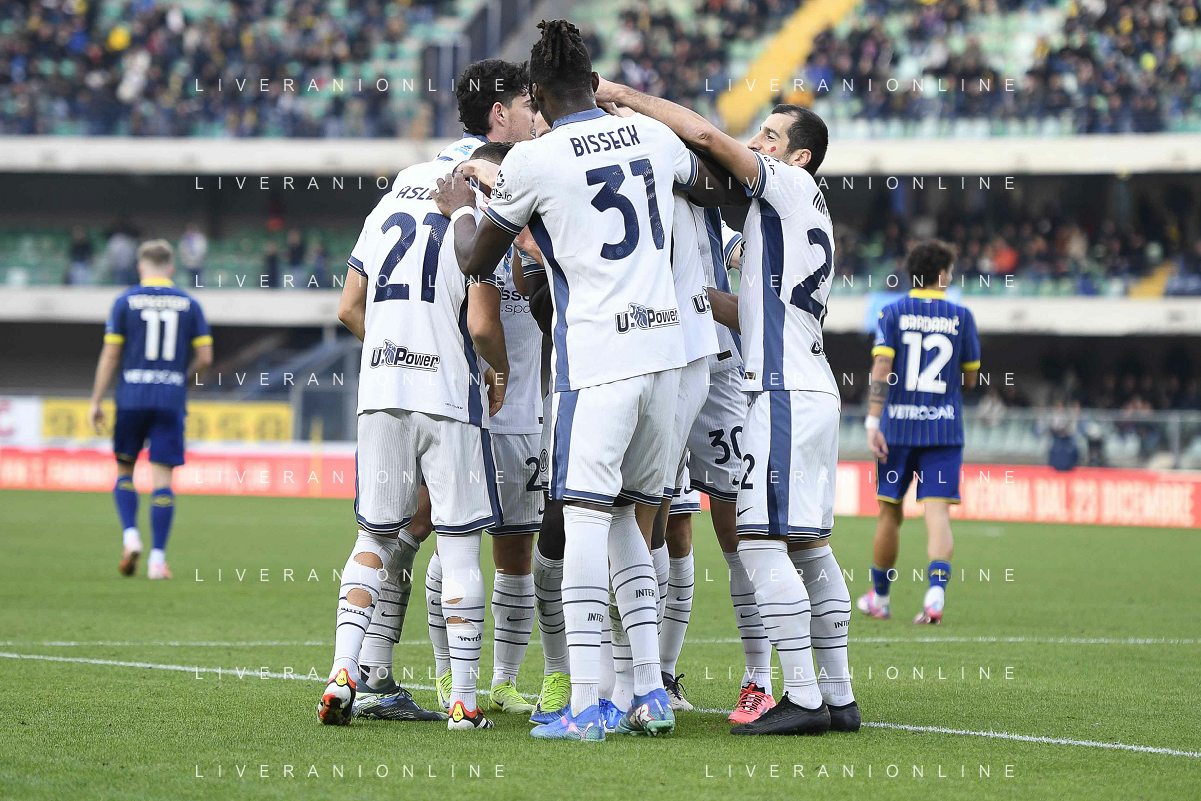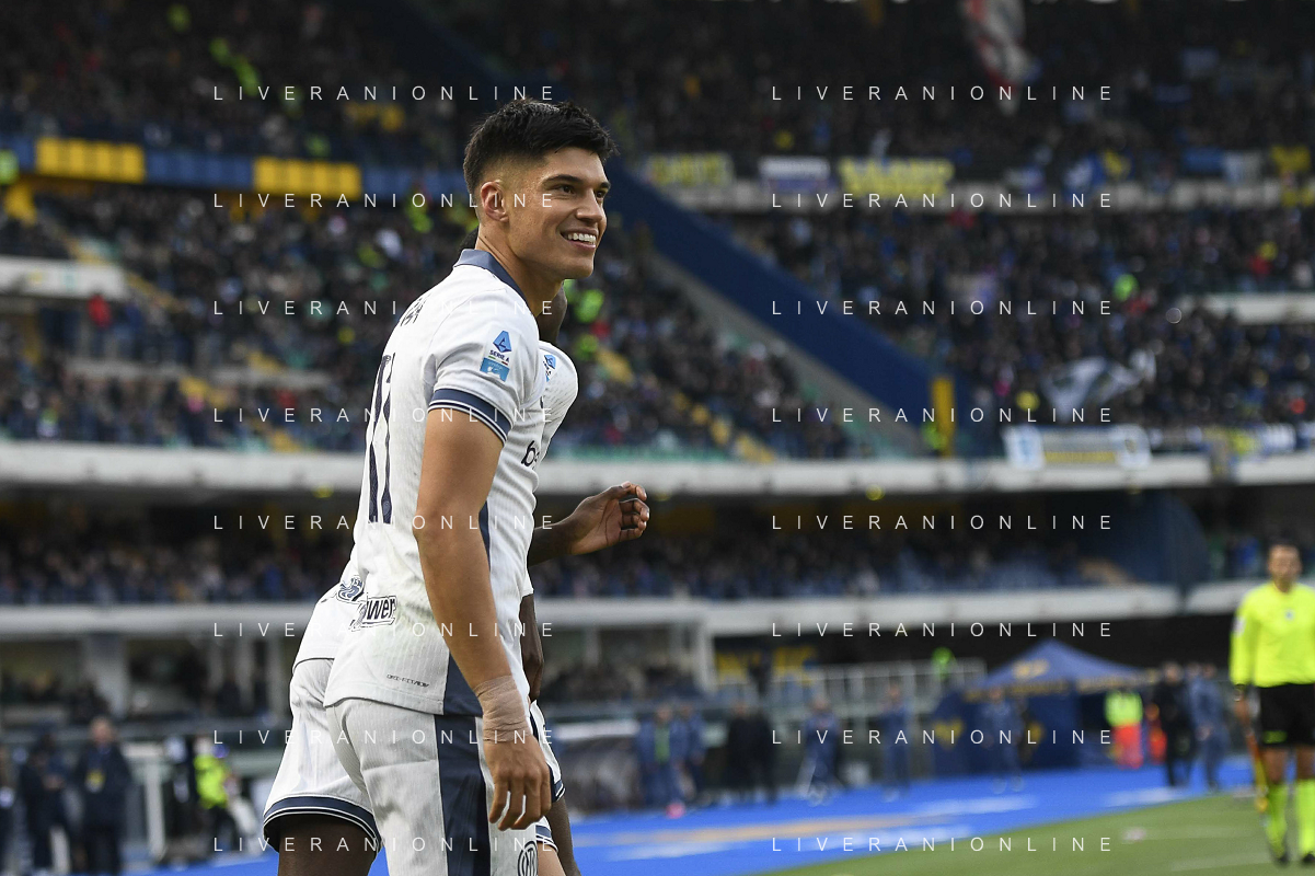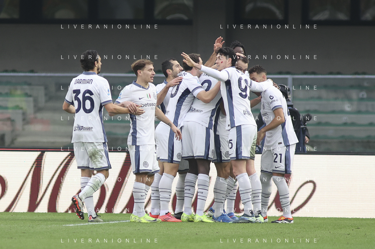 Joaquin Correa of Inter FC celebrates after scoring goal during Hellas Verona FC vs Inter FC, 13° Serie A Enilive 2024-25 game at Marcantonio Bentegodi stadium in Verona (VR), Italy, on November 23, 2024. (Photo by Davide Casentini)- AGENZIA ALDO LIVERANI SAS
