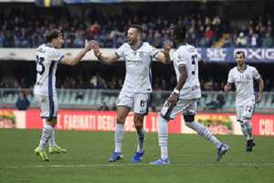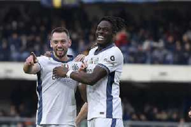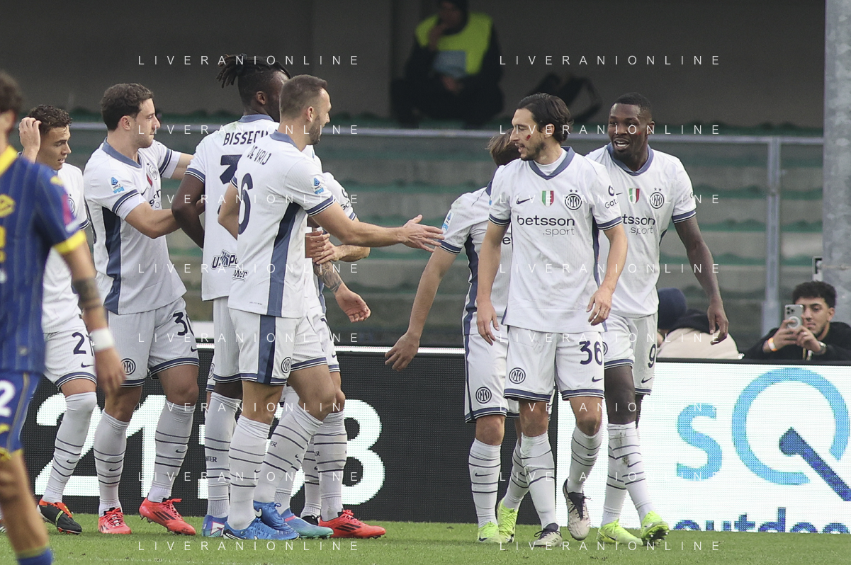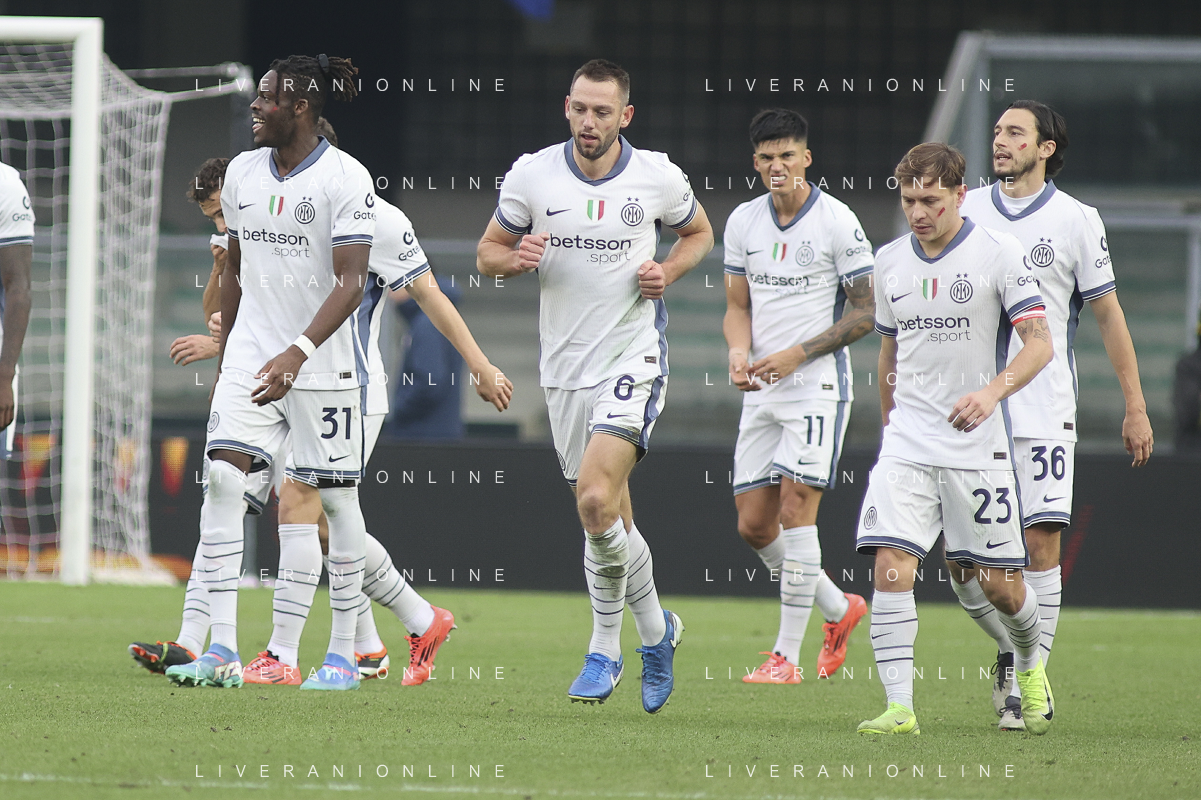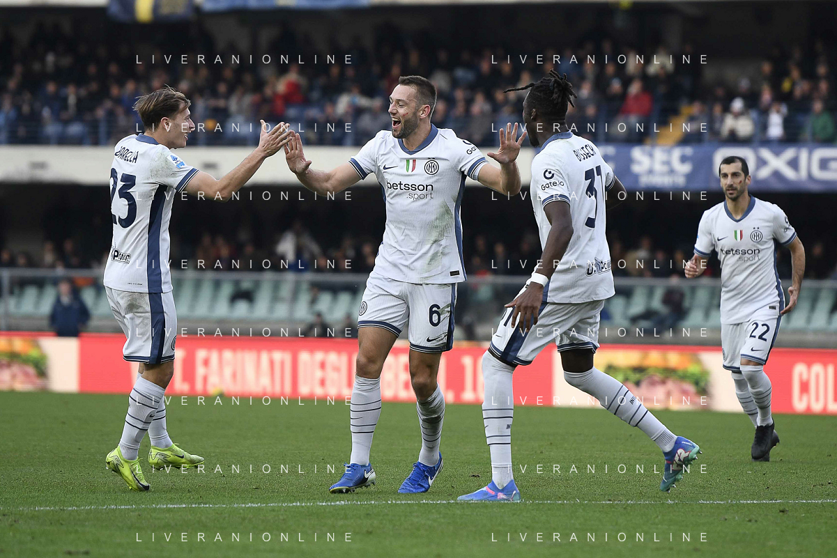 Stefan de Vrij of Inter FC celebrates after scoring during Hellas Verona FC vs Inter FC, 13° Serie A Enilive 2024-25 game at Marcantonio Bentegodi stadium in Verona (VR), Italy, on November 23, 2024. (Photo by Davide Casentini)- AGENZIA ALDO LIVERANI SAS