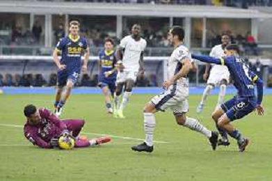 Marcus Thuram of Inter FC scores a goal during Hellas Verona FC vs Inter FC, 13° Serie A Enilive 2024-25 game at Marcantonio Bentegodi stadium in Verona (VR), Italy, on November 23, 2024. (Photo by Davide Casentini)- AGENZIA ALDO LIVERANI SAS