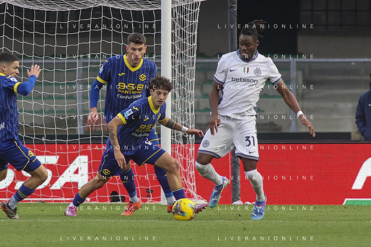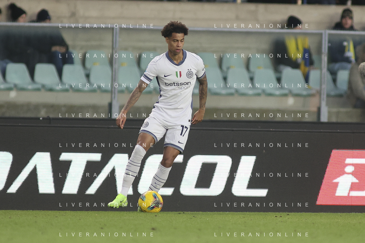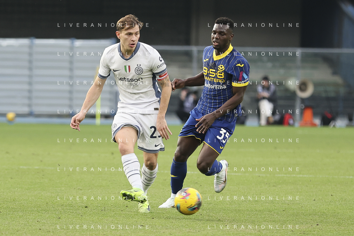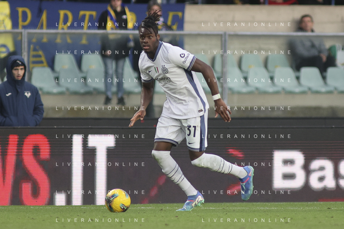 Kristjan Asllani of Inter FC during Hellas Verona FC vs Inter FC, 13° Serie A Enilive 2024-25 game at Marcantonio Bentegodi stadium in Verona (VR), Italy, on November 23, 2024. (Photo by Davide Casentini)- AGENZIA ALDO LIVERANI SAS