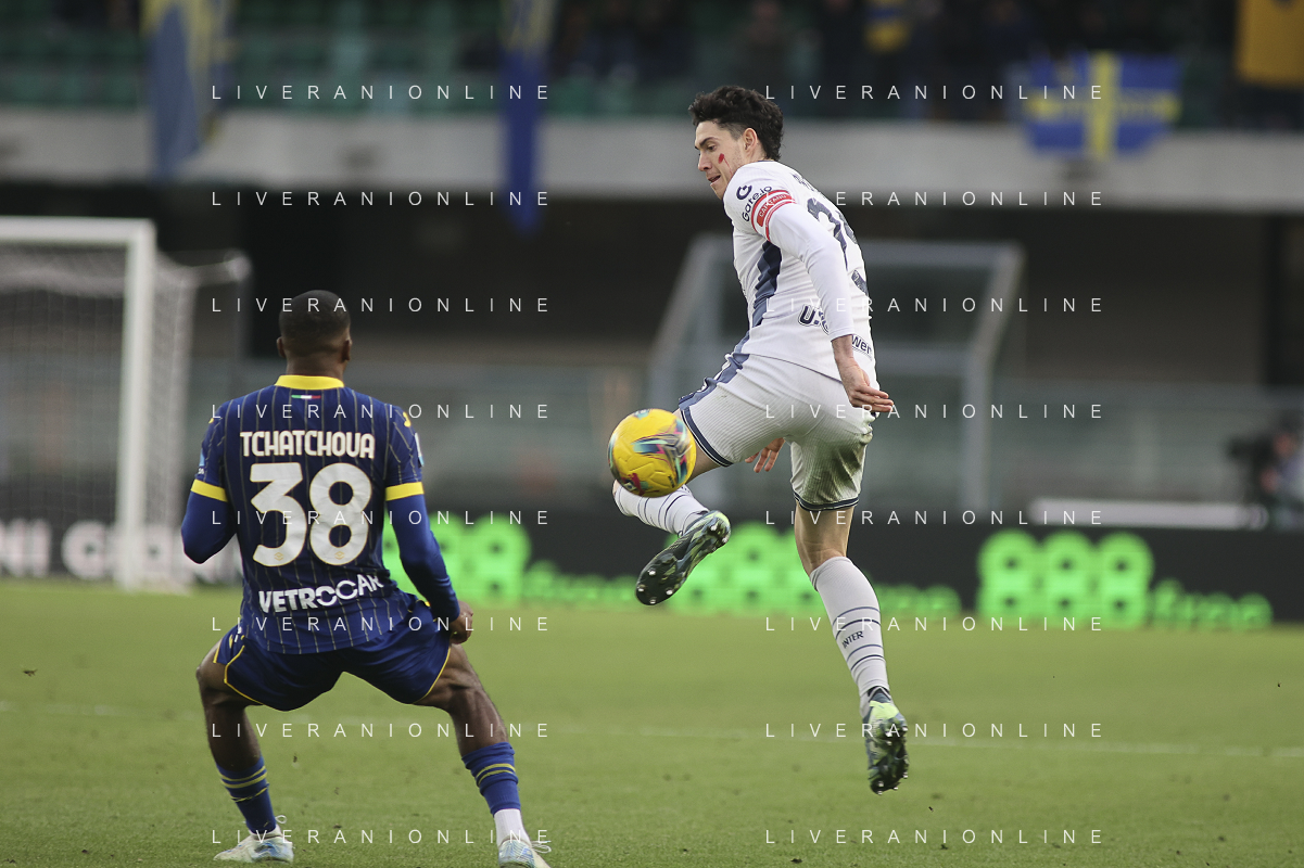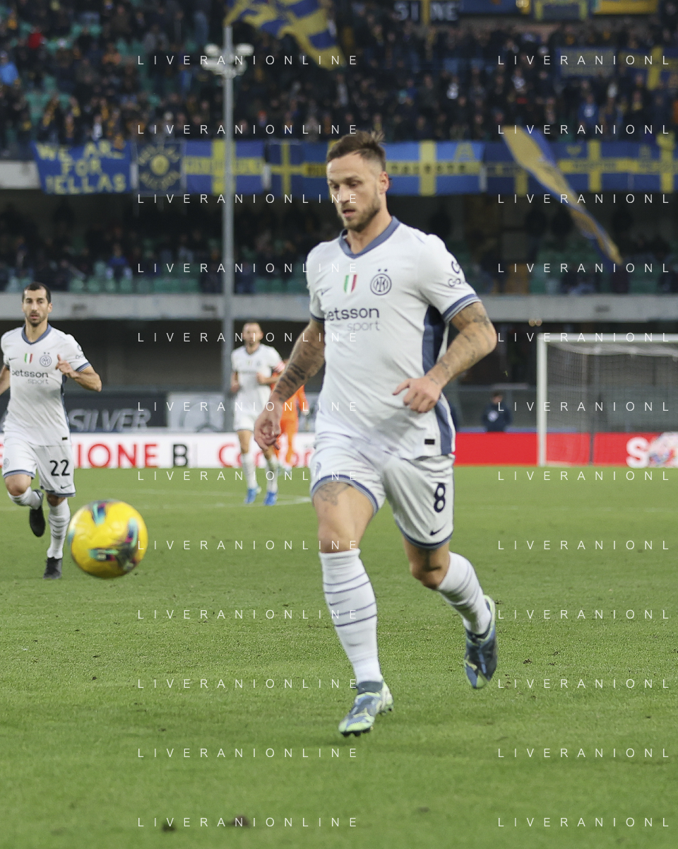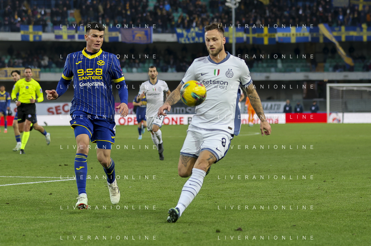 Domagoj Bradaric of Hellas Verona FC play the ball during Hellas Verona FC vs Inter FC, 13° Serie A Enilive 2024-25 game at Marcantonio Bentegodi stadium in Verona (VR), Italy, on November 23, 2024. (Photo by Davide Casentini)- AGENZIA ALDO LIVERANI SAS