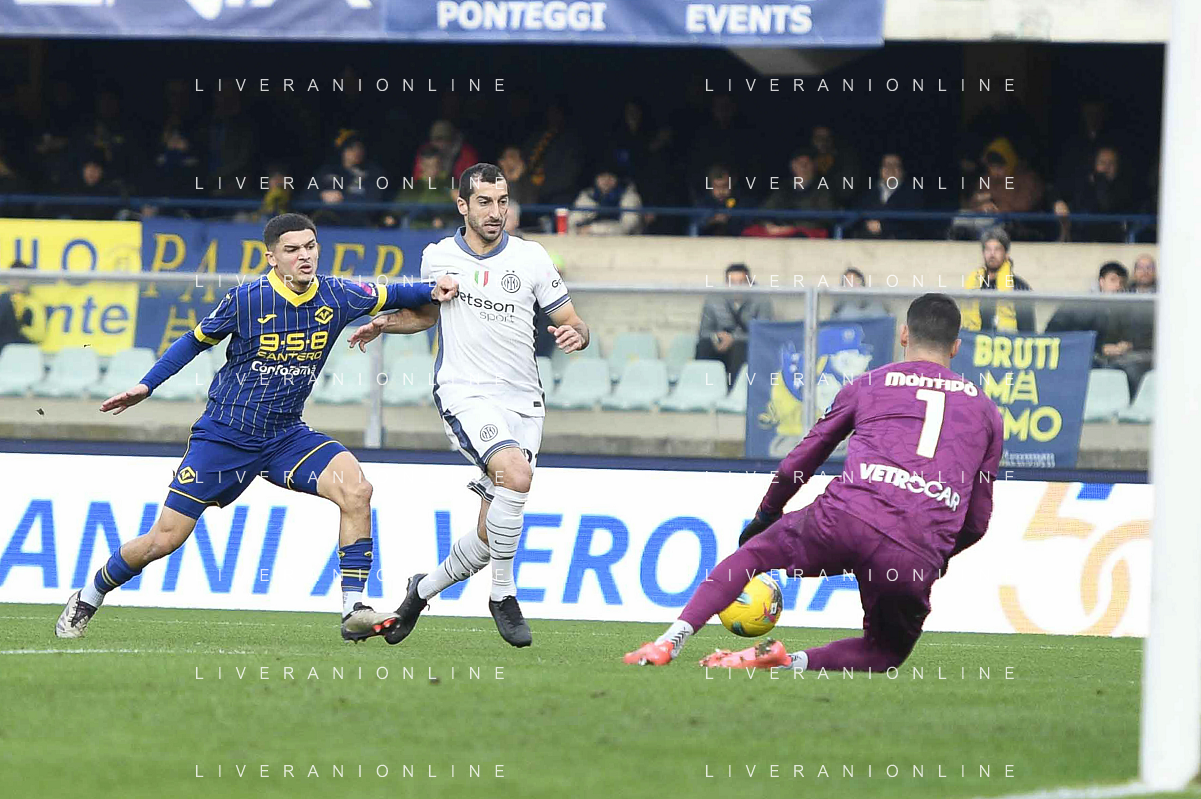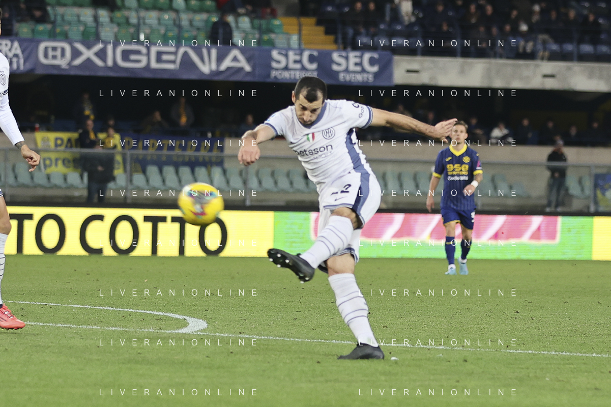 Henrikh Mkhitaryan of Inter FC kick the ball during Hellas Verona FC vs Inter FC, 13° Serie A Enilive 2024-25 game at Marcantonio Bentegodi stadium in Verona (VR), Italy, on November 23, 2024. (Photo by Davide Casentini)- AGENZIA ALDO LIVERANI SAS