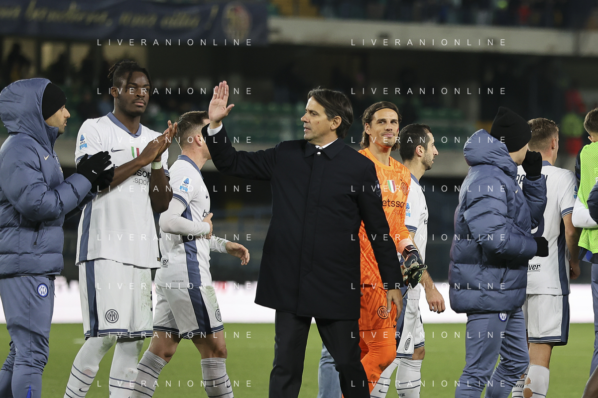 Simone Inzaghi Head Coach of Inter FC applaud the fans following the final whistle during Hellas Verona FC vs Inter FC, 13° Serie A Enilive 2024-25 game at Marcantonio Bentegodi stadium in Verona (VR), Italy, on November 23, 2024. (Photo by Davide Casentini)- AGENZIA ALDO LIVERANI SAS
