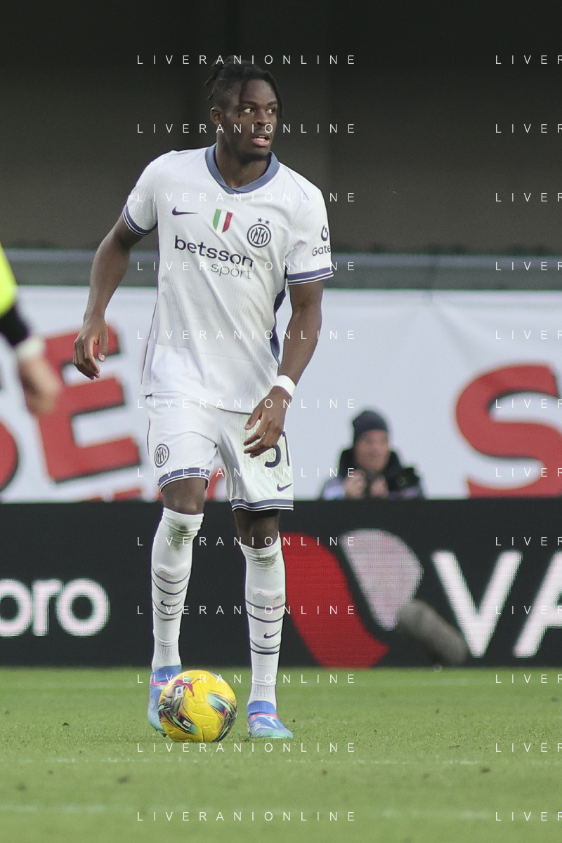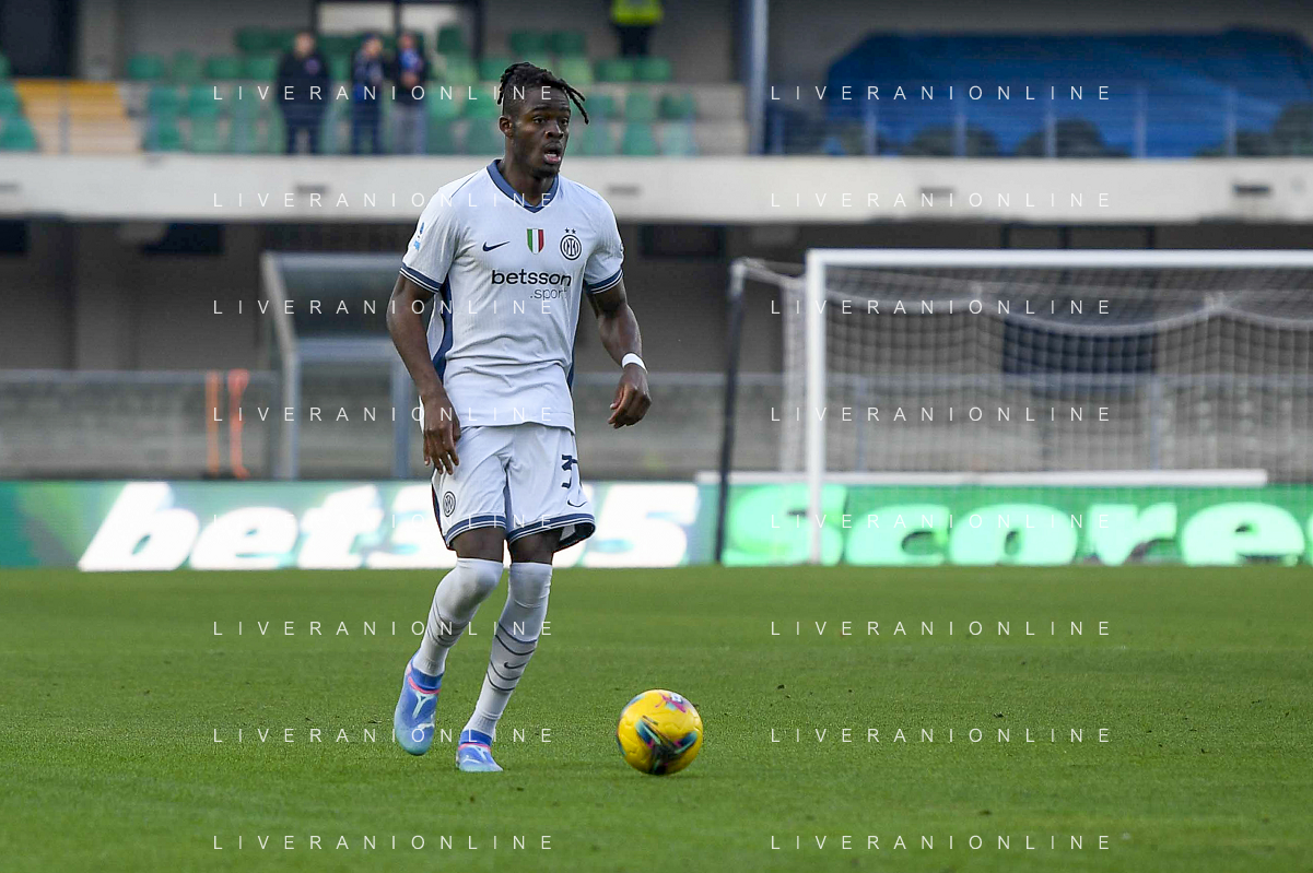 Yann Aurel Bisseck of Inter FC play the ball during Hellas Verona FC vs Inter FC, 13° Serie A Enilive 2024-25 game at Marcantonio Bentegodi stadium in Verona (VR), Italy, on November 23, 2024. (Photo by Davide Casentini)- AGENZIA ALDO LIVERANI SAS