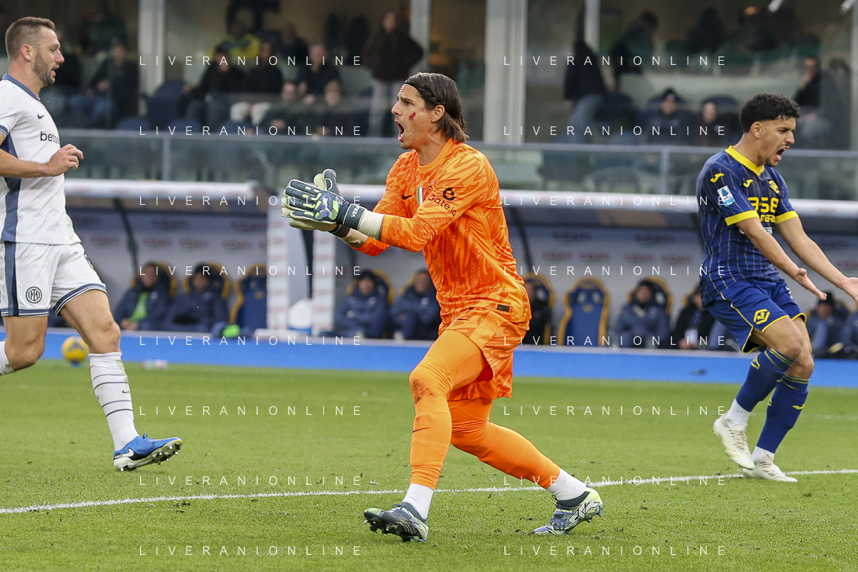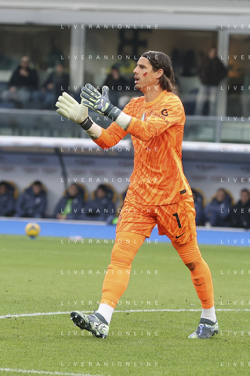Yann Sommer of Inter FC makes a save during Hellas Verona FC vs Inter FC, 13° Serie A Enilive 2024-25 game at Marcantonio Bentegodi stadium in Verona (VR), Italy, on November 23, 2024. (Photo by Davide Casentini)- AGENZIA ALDO LIVERANI SAS