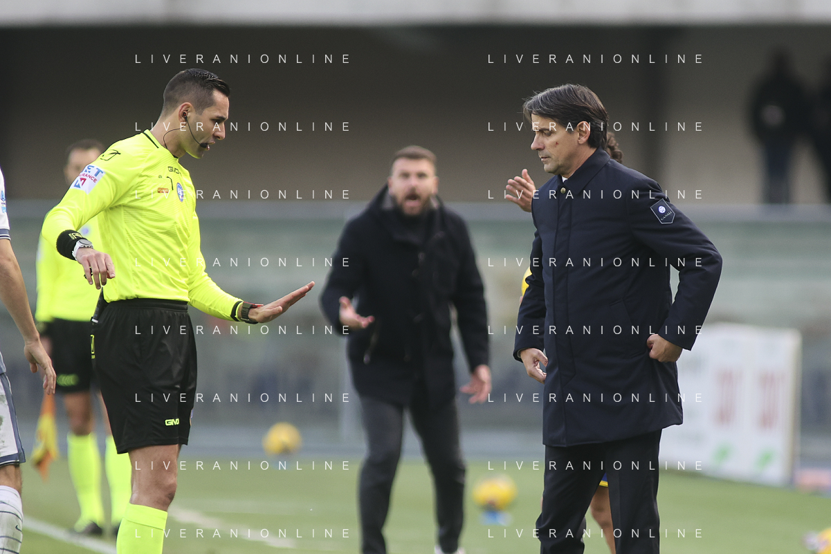 arbitro - The Referee Andrea Colombo speaks to Simone Inzaghi Head Coach of Inter FC during Hellas Verona FC vs Inter FC, 13° Serie A Enilive 2024-25 game at Marcantonio Bentegodi stadium in Verona (VR), Italy, on November 23, 2024. (Photo by Davide Casentini)- AGENZIA ALDO LIVERANI SAS