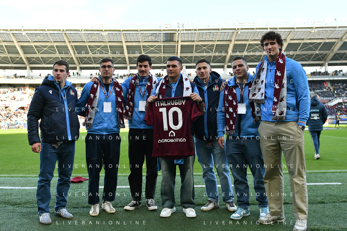 TVMV-Torino 24.11.2024 Stadio Grande Torino @Manuela Viganti/Ag. Aldo Liverani sas Torino vs Monza Campionato Calcio Serie A Enilive 2024/2025 13a giornata Nella foto: delegazione dell'italia del rugby allo stadio grande torino