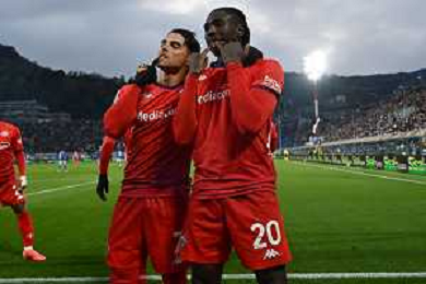 TVRG Como vs Fiorentina nella foto Moise Kean (Fiorentina) e Riccardo Sottil (Fiorentina) esultanza dopo il gol del 2 a 0 Como 24-11-2024 Stadio Giuseppe Sinigaglia Campionato Serie A Enilive - 13a giornata foto Roberto Garavaglia/Agenzia Aldo Liverani sas