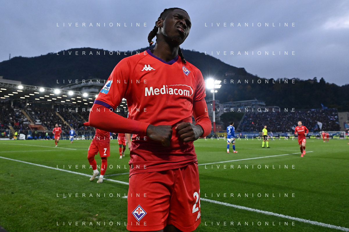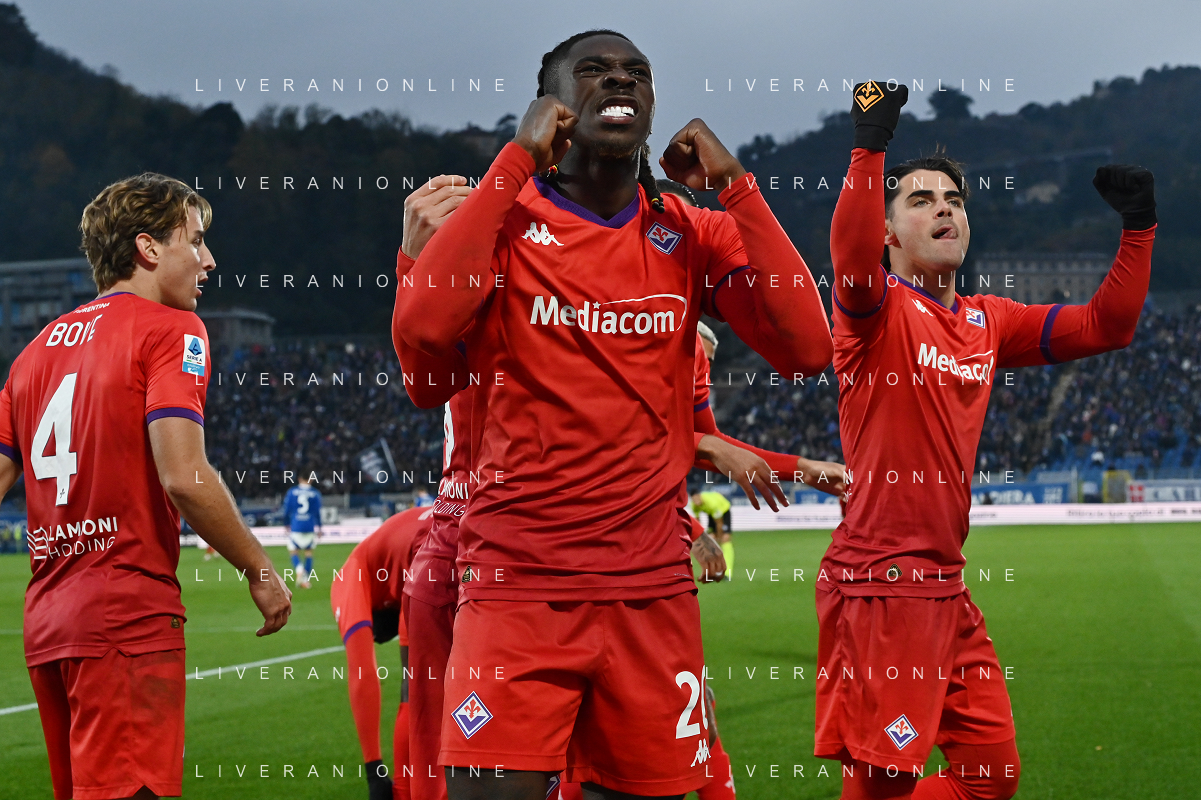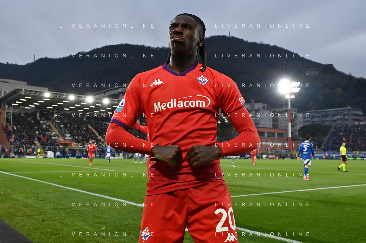 TVRG Como vs Fiorentina nella foto Moise Kean (Fiorentina) esultanza dopo il gol del 2 a 0 Como 24-11-2024 Stadio Giuseppe Sinigaglia Campionato Serie A Enilive - 13a giornata foto Roberto Garavaglia/Agenzia Aldo Liverani sas