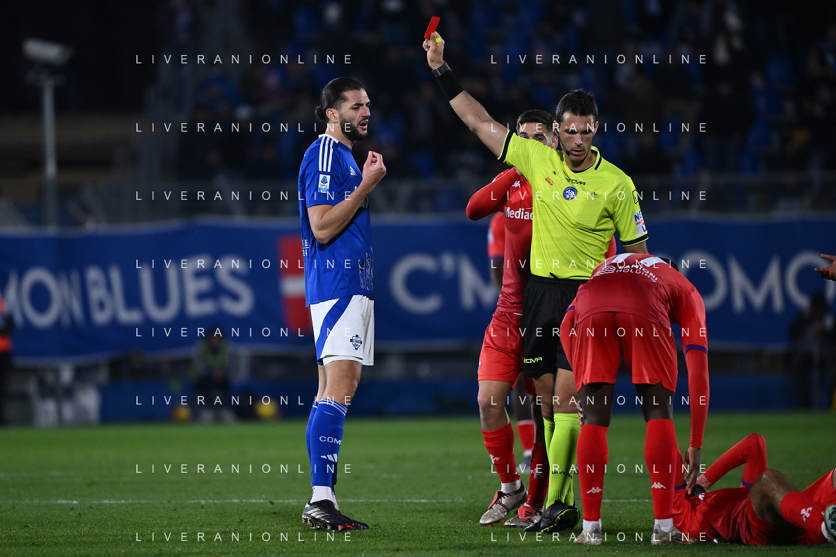 TVRG Como vs Fiorentina nella foto l'arbitro Matteo Marchetti di Ostia Lido (Roma) espelle Alberto Dossena (Como) Como 24-11-2024 Stadio Giuseppe Sinigaglia Campionato Serie A Enilive - 13a giornata foto Roberto Garavaglia/Agenzia Aldo Liverani sas