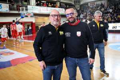 IMOLA 24 11 2024 NEUPHARMA VIRTUS IMOLA -UP ANDREA COSTA BASKET SERIE B1 NELLA FOTO DA SINISTRA ALLENATORE DELLA VIRTUS IMOLA GIANLUIGI GALETTI E MATTEO ANGORI ALLENATORE ANDREA COSTA BASKET ©SANNA - Agenzia ALDO LIVERANI SAS