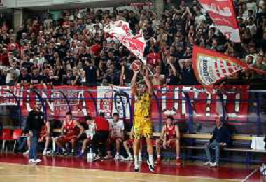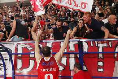 IMOLA 24 11 2024 NEUPHARMA VIRTUS IMOLA-UP ANDREA COSTA BASKET 68-82 SERIE B1 NELLA FOTO LUCA TONIATO ANDRA COSTA IMOLA CON I TIFOSI FOTO GIANNI SANNA-AG ALDO LIVERANI SAS