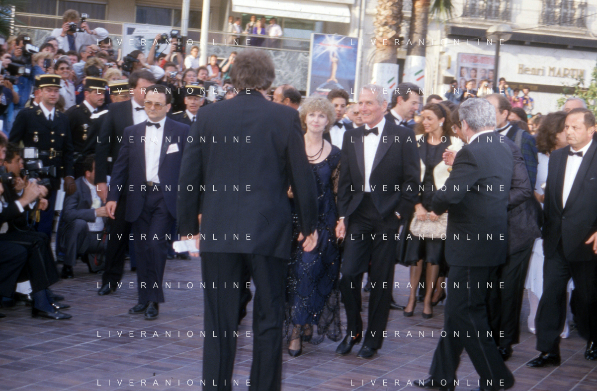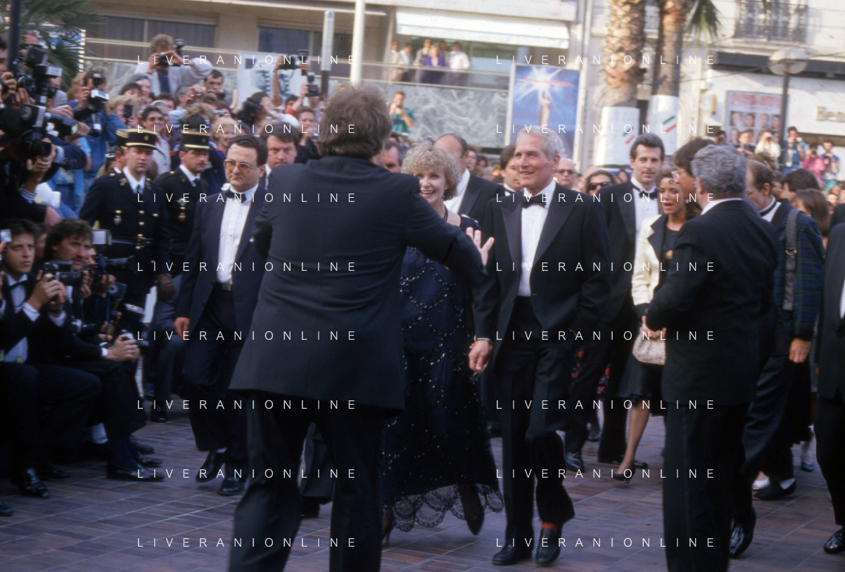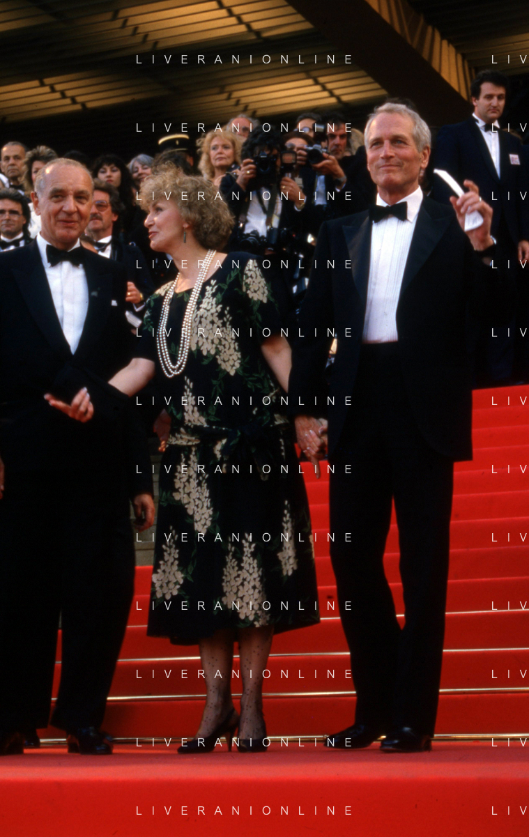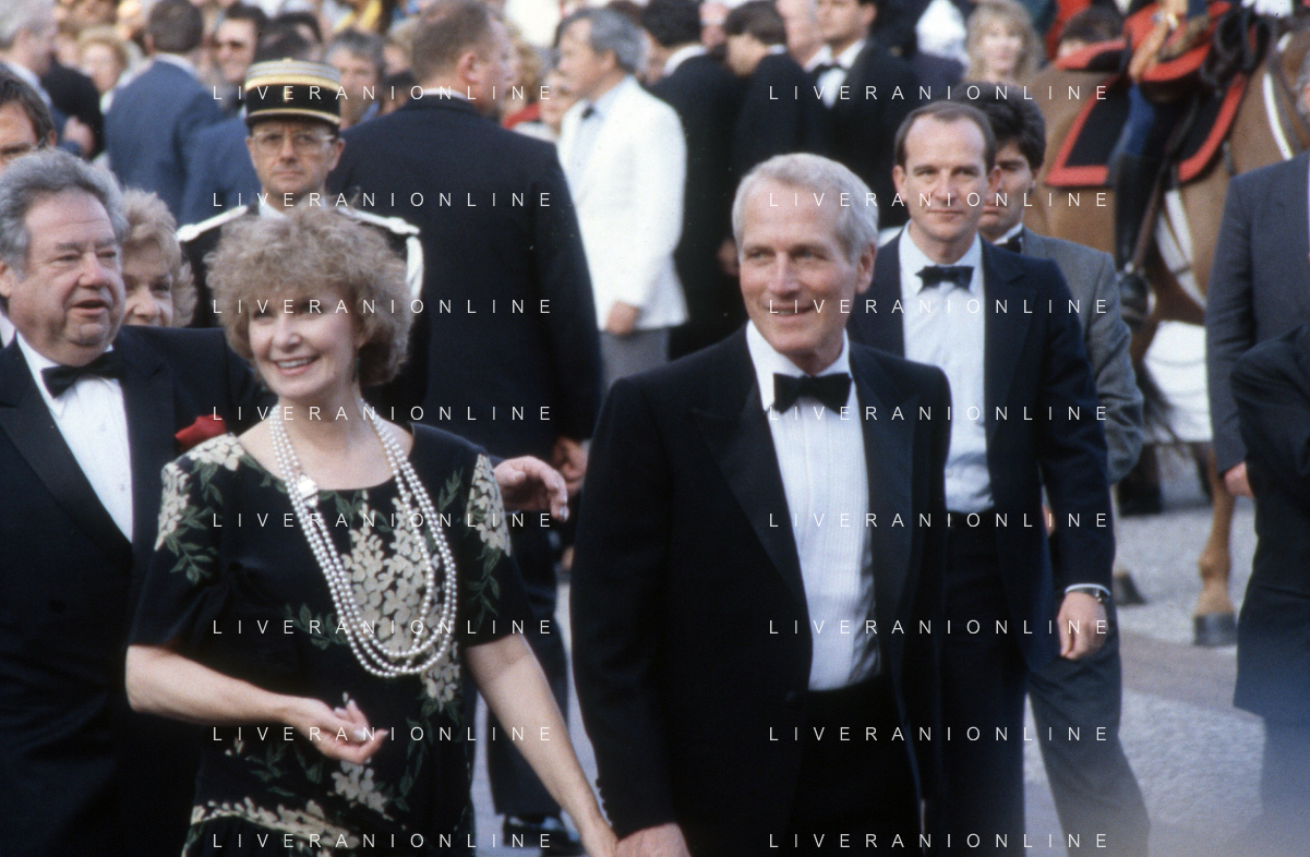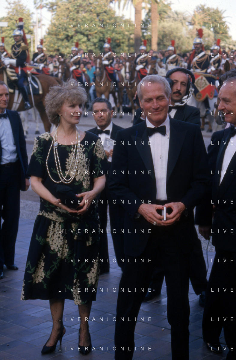 DIAP-RETROSPETTIVA PAUL NEWMAN ATTORE NELLA FOTO PAUL NEWMAN CON LA MOGLIE JOANNE WOODWARD A CANNES NELL'ANNO 1987 AG ALDO LIVERANI SAS