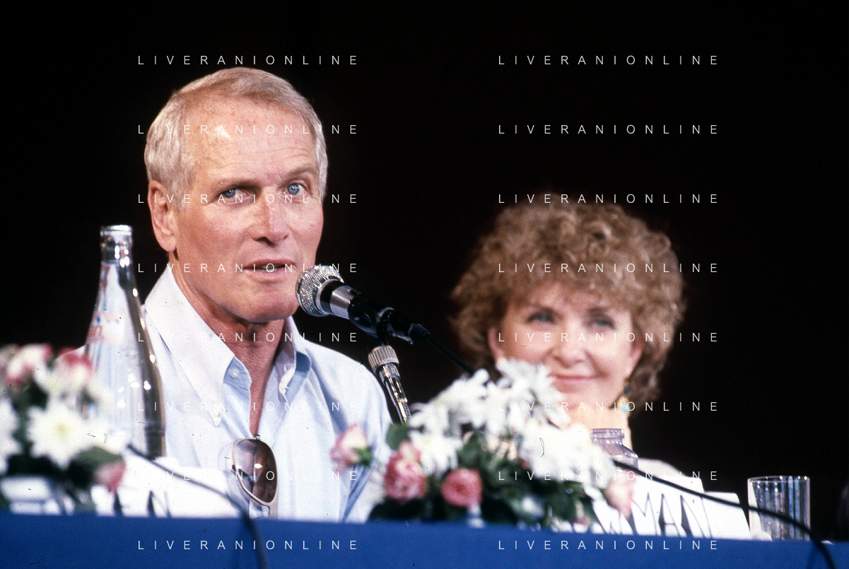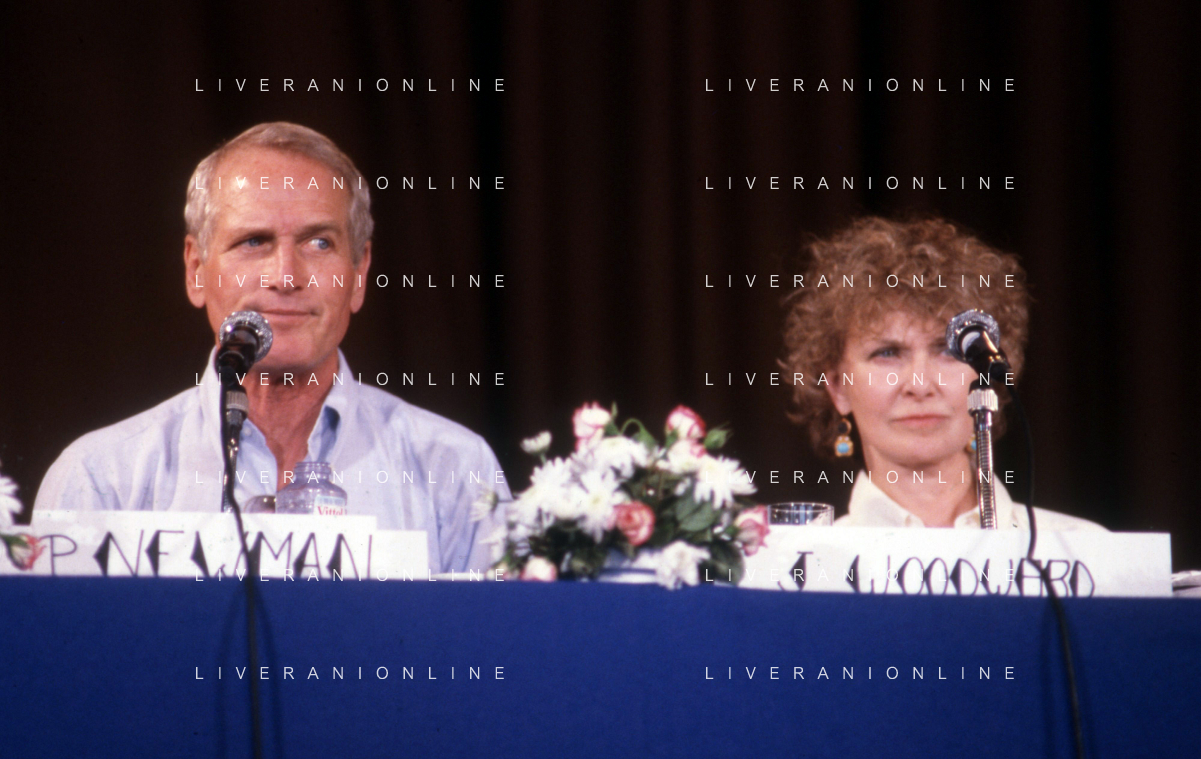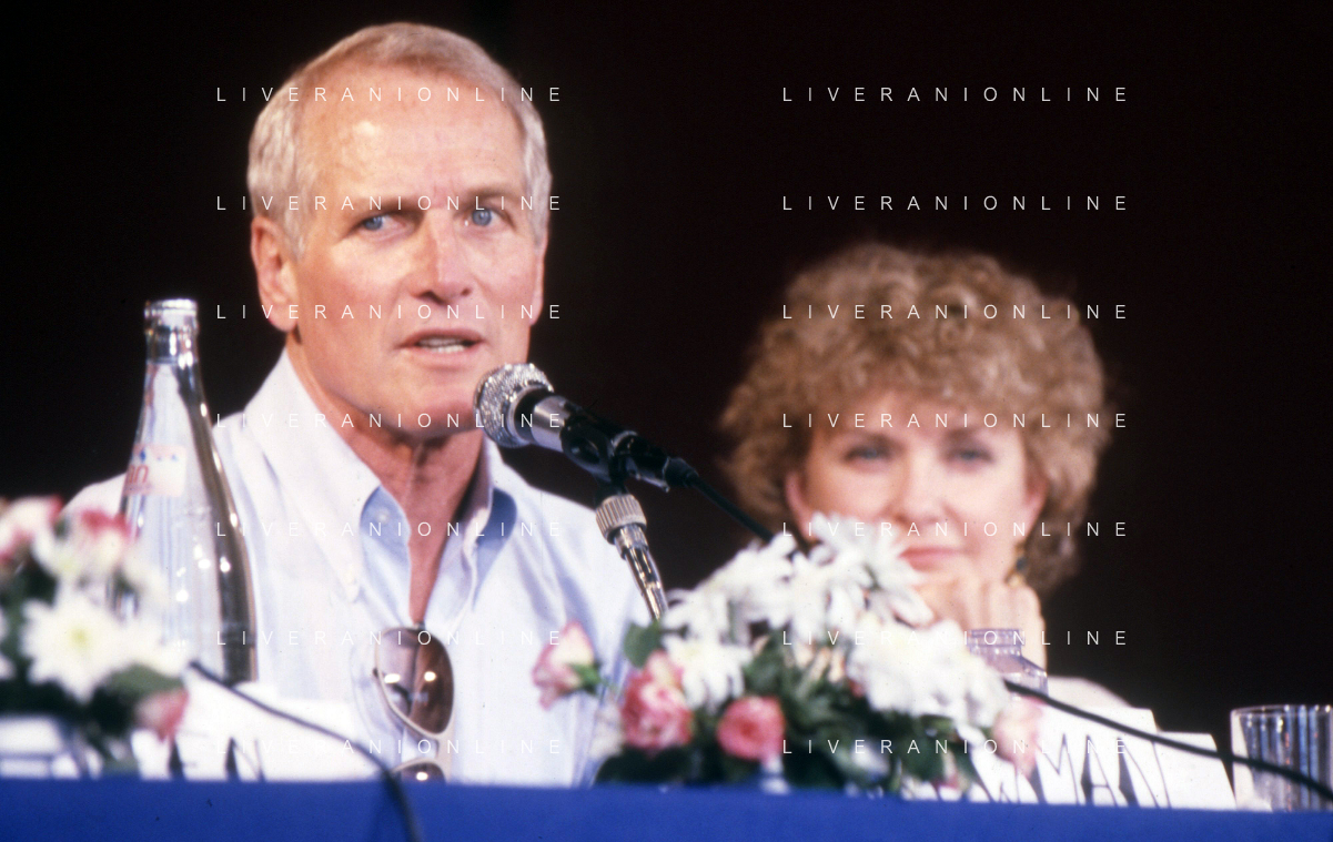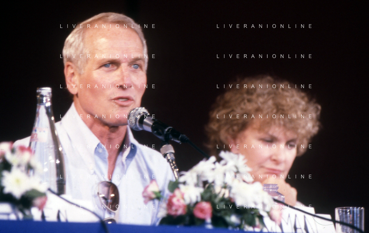 DIAP-RETROSPETTIVA PAUL NEWMAN ATTORE NELLA FOTO PAUL NEWMAN CON LA MOGLIE JOANNE WOODWARD A CANNES NELL'ANNO 1987 AG ALDO LIVERANI SAS
