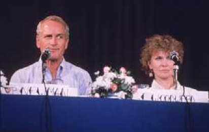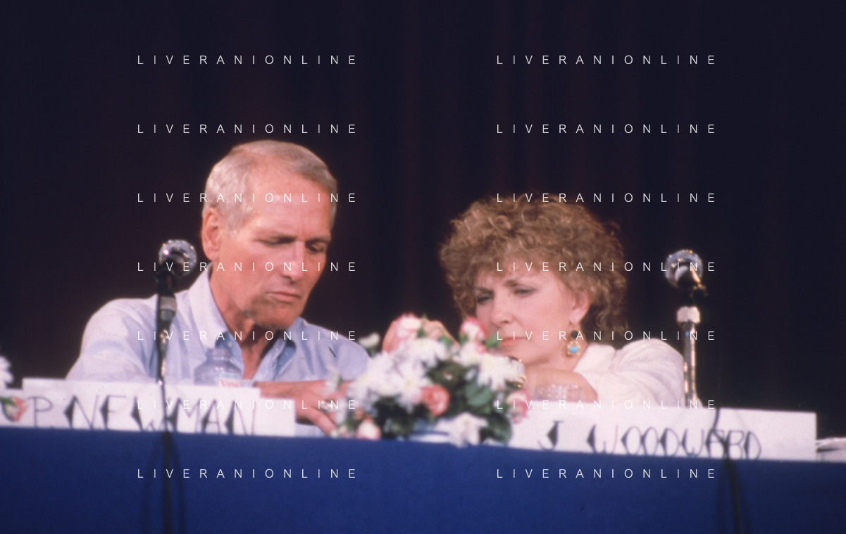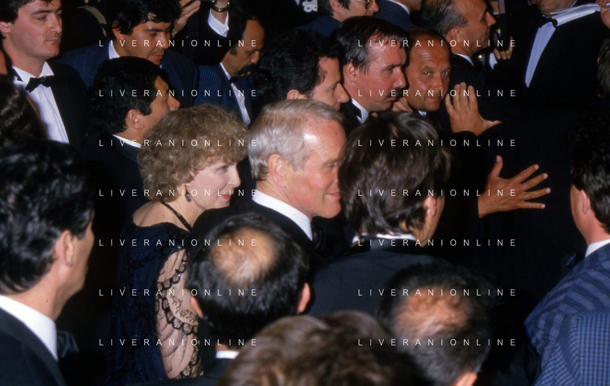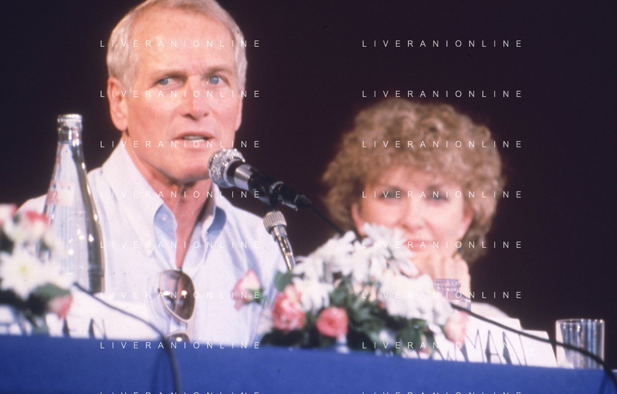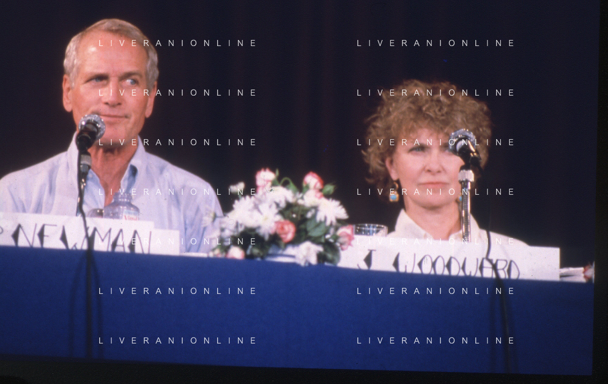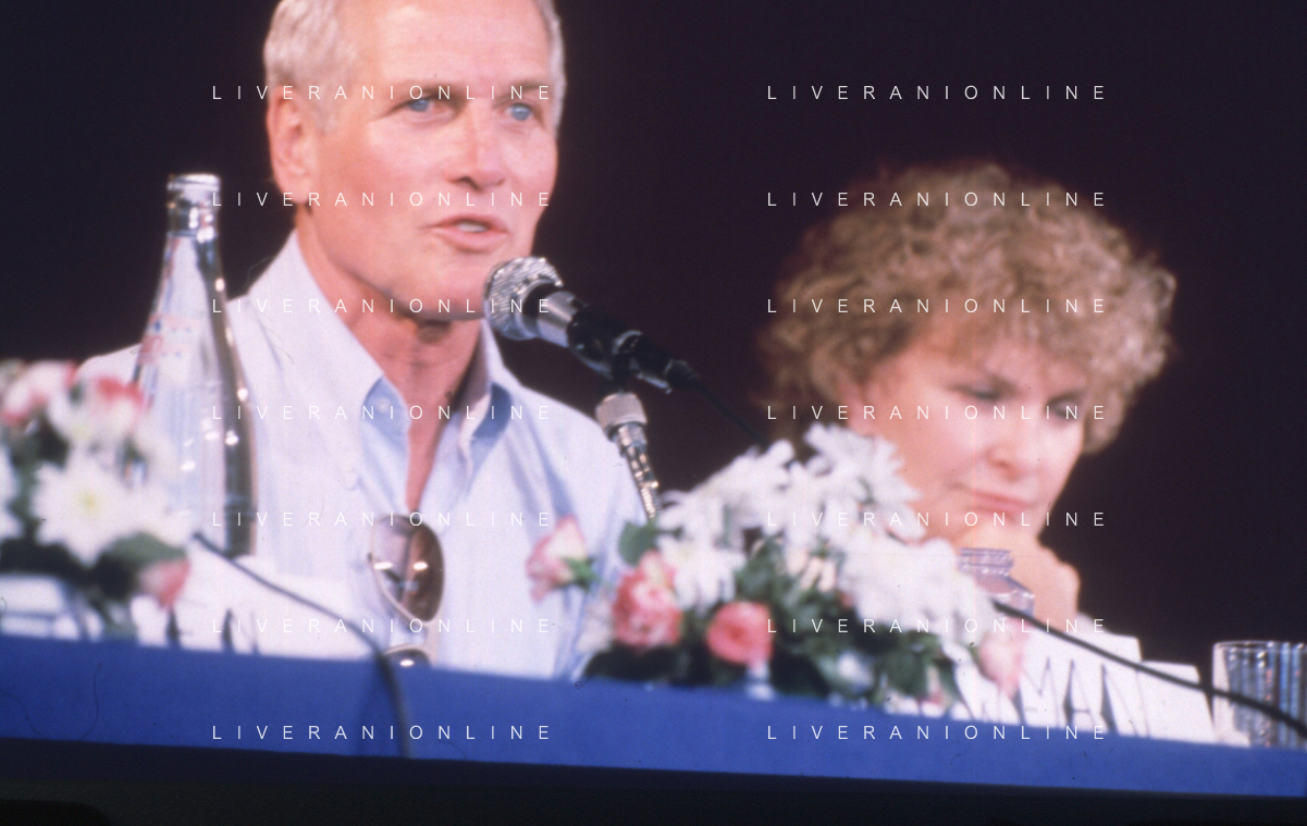 DIAP-RETROSPETTIVA PAUL NEWMAN ATTORE NELLA FOTO PAUL NEWMAN CON LA MOGLIE JOANNE WOODWARD A CANNES NELL'ANNO 1987 AG ALDO LIVERANI SAS