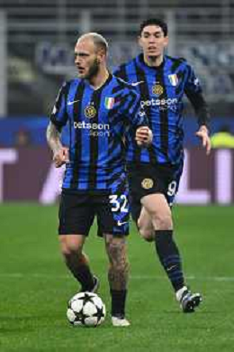 Inter vs Lipsia nella foto Stefan de Vrij (Inter) esultanza a fine partita Milano 26-11-2024 Stadio Giuseppe Meazza - San Siro UEFA Champions League fase a girone unico - 5a giornata foto Roberto Garavaglia/Agenzia Aldo Liverani sas