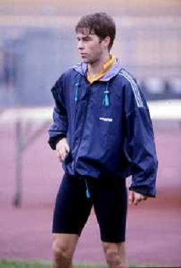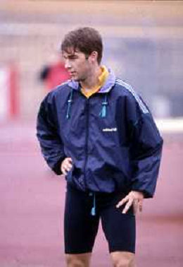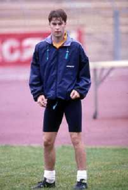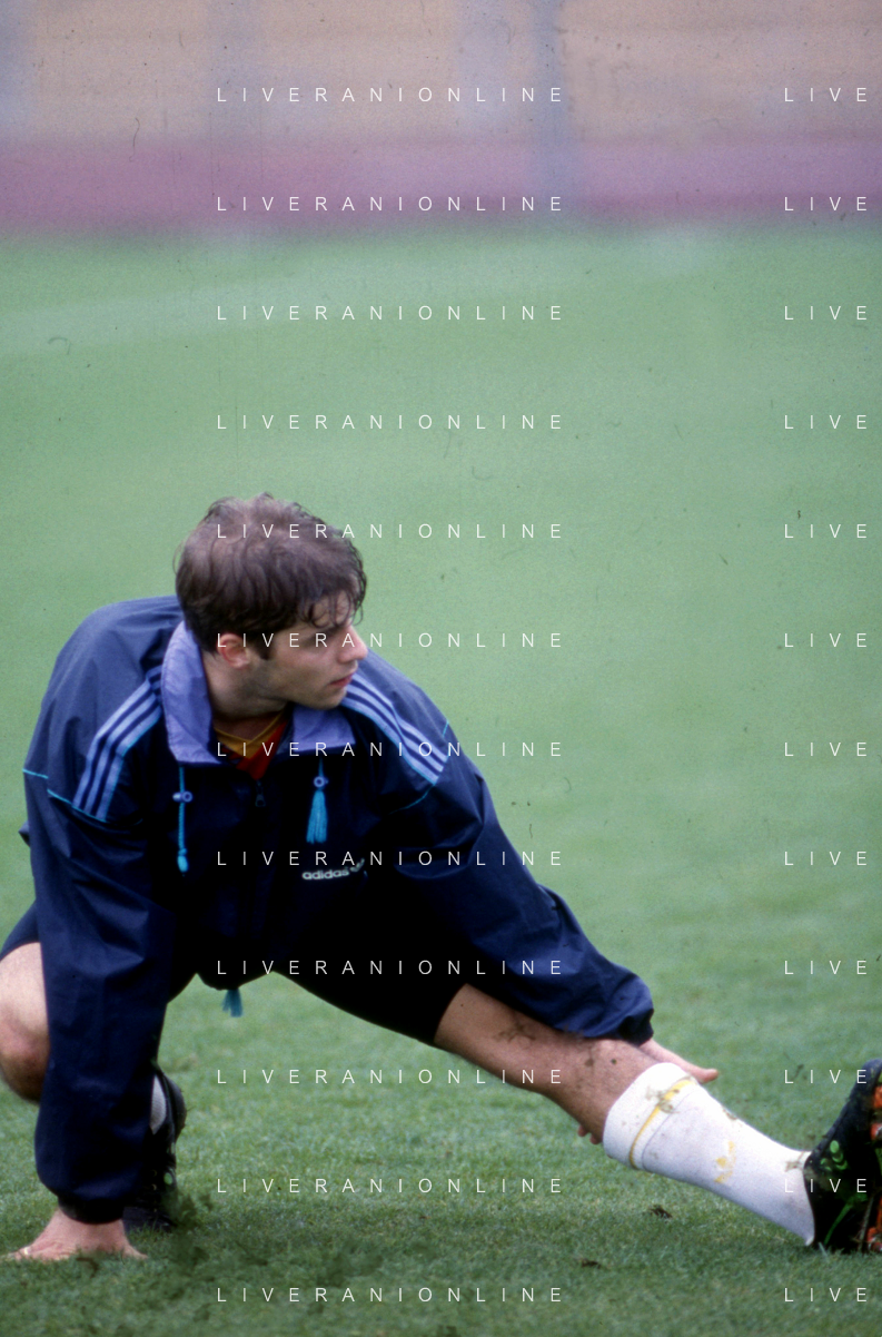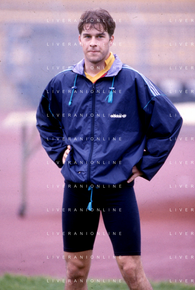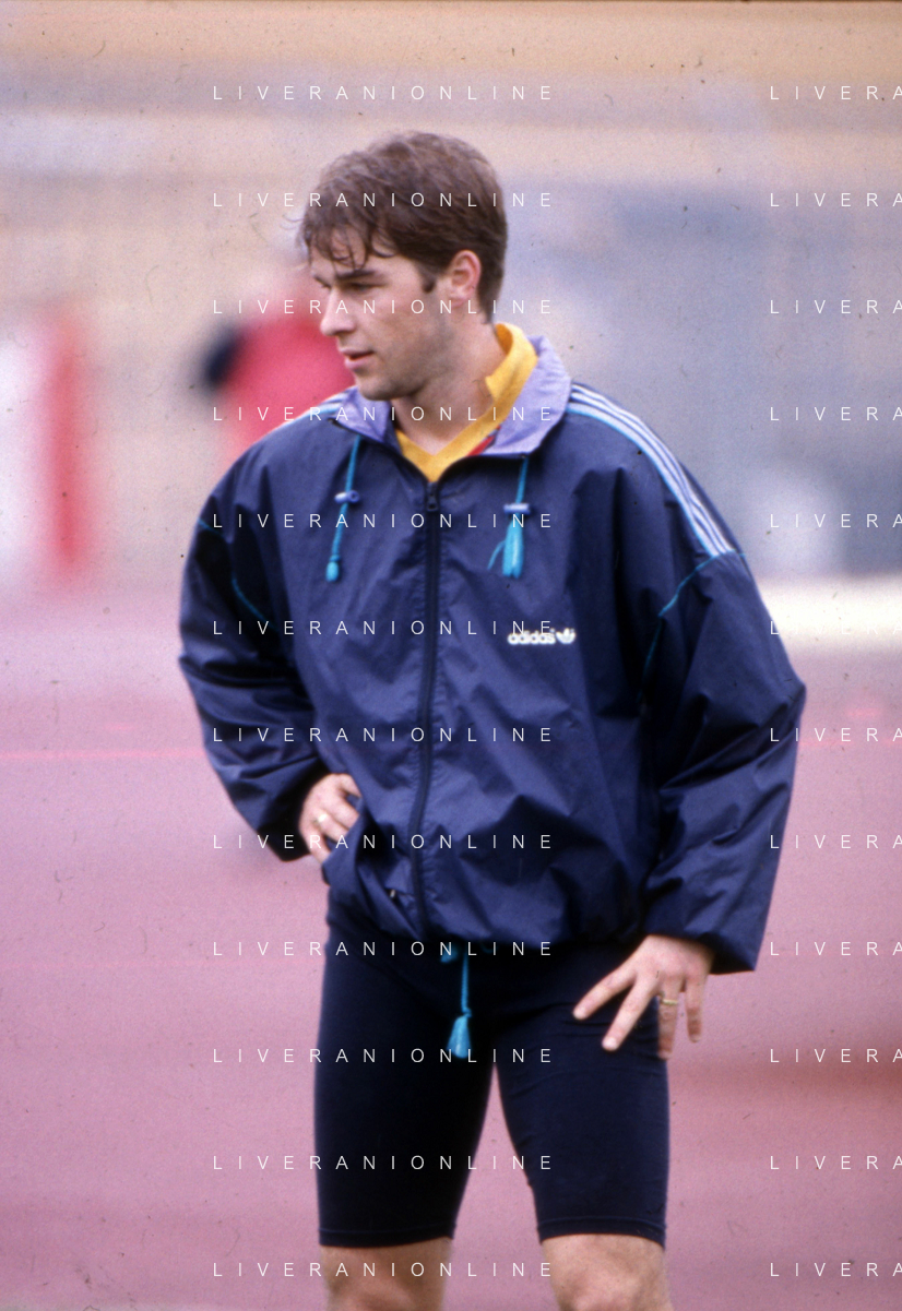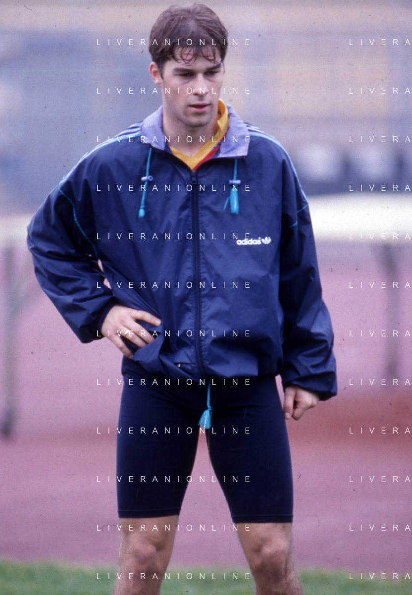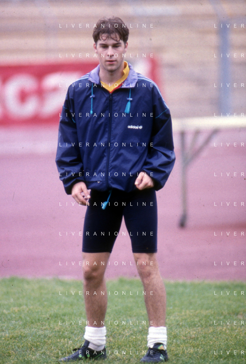 DIA-RETROSPETTIVA BELLOTTI FABIO CALCIATORE NELLA FOTO FABIO BELOTTI CON LA MAGLIA DEL LECCE CALCIO ALLENAMENTO NELL’ANNO 1991-1992 AG ALDO LIVERANI SAS