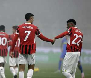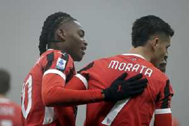 Esultanza dopogol alvaro morata con rafael leao -MILAN - EMPOLI CAMPIONATO CALCIO SERIE A 30.11.2024 ©PAOLO GIAMPIETRI - AGENZIA ALDO LIVERANI SAS