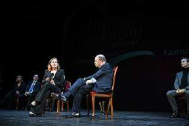 premio Guidarello 2024 Serena Biondini e Bruno Vespa Ravenna Teatro Alighieri -53a Edizione del premio Guidarello per il Giornalismo d’Autore ©SIROTTI - AGENZIA ALDO LIVERANI SAS