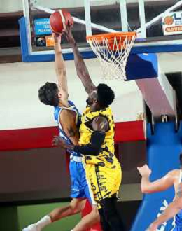IMOLA 01 12 2024 NEUPHARMA VIRTUS IMOLA BASKET-CAPO D'ORLANDO 85-75 SERIE B1 NELLA FOTO STOPPATA DI SIMON ANAEKWE IMOLA ©SANNA - AGENZIA ALDO LIVERANI SAS