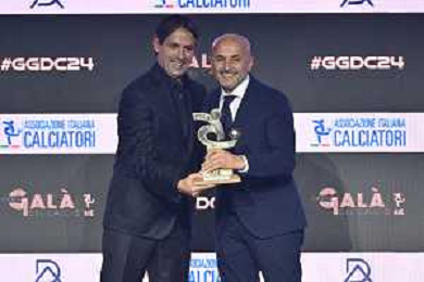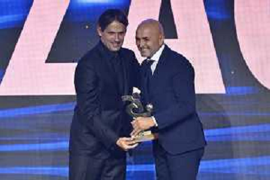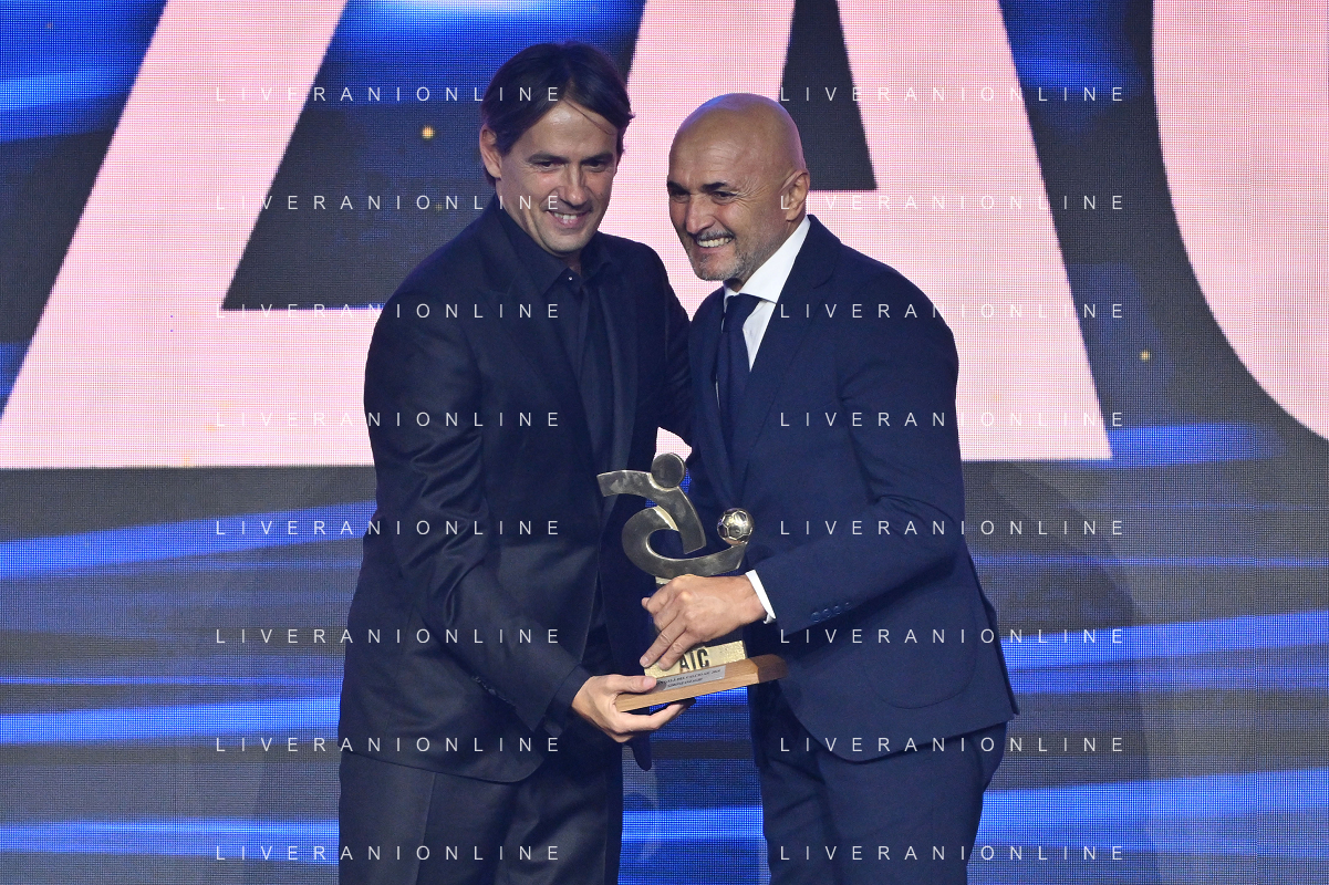 TVRG Gala Calcio 2024 nella foto Simone Inzaghi allenatore Inter premiato da Luciano Spalletti allenatore Italia come miglior allenatore Milano 02-12-2024 Gran Gala del Calcio 2024, l'appuntamento organizzato dall'AIC Associazione Italiana Calciatori per premiare i protagonisti della stagione 2023-2024 foto Roberto Garavaglia/ag. Aldo Liverani sas
