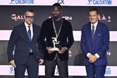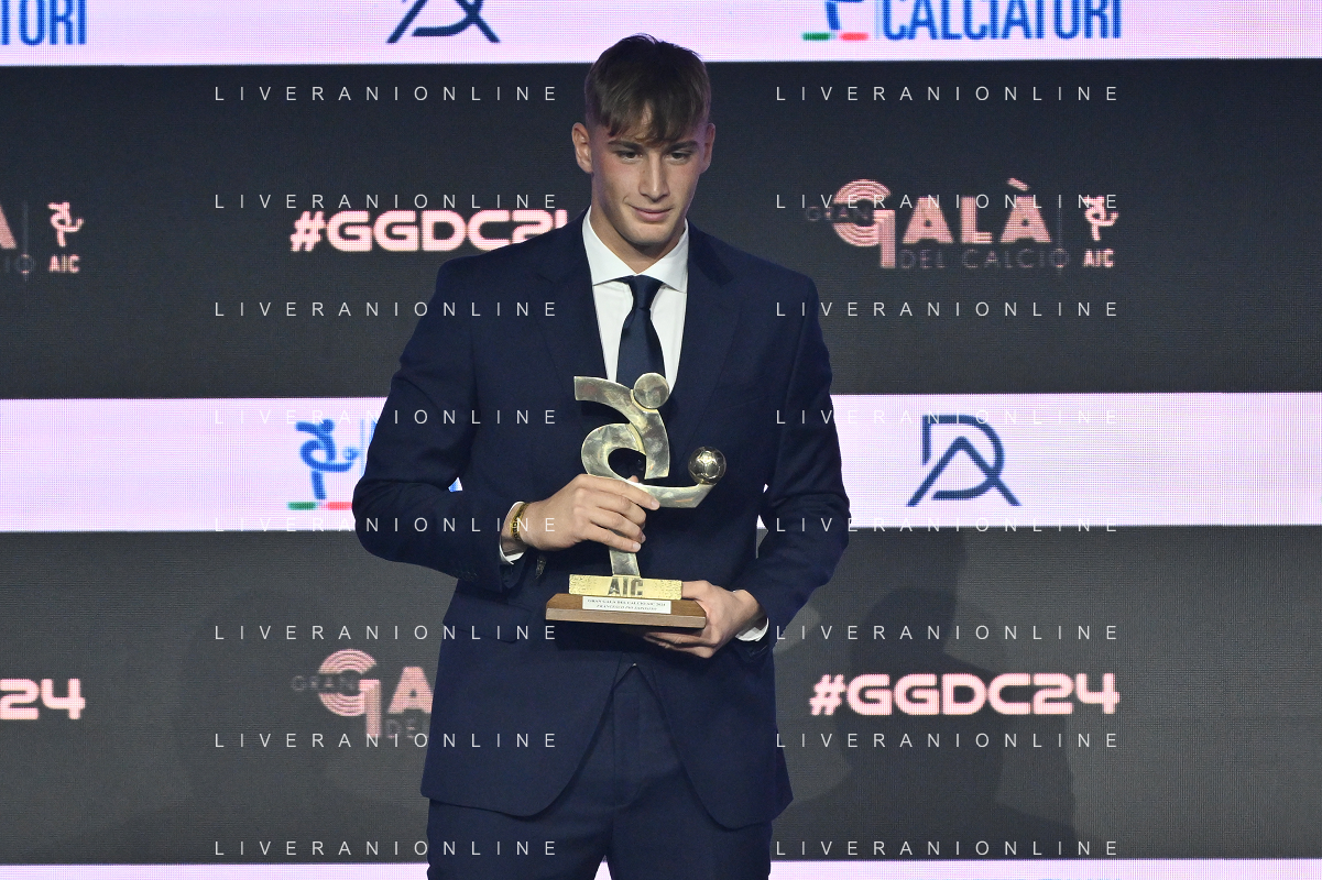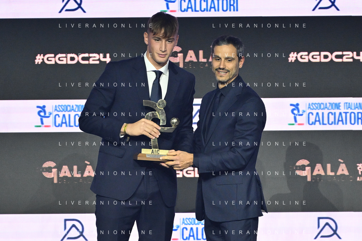 TVRG Gala Calcio 2024 nella foto Pio Esposito premiato come miglior giovane della Serie B Milano 02-12-2024 Gran Gala del Calcio 2024, l'appuntamento organizzato dall'AIC Associazione Italiana Calciatori per premiare i protagonisti della stagione 2023-2024 foto Roberto Garavaglia/ag. Aldo Liverani sas