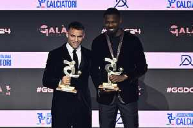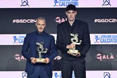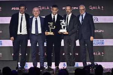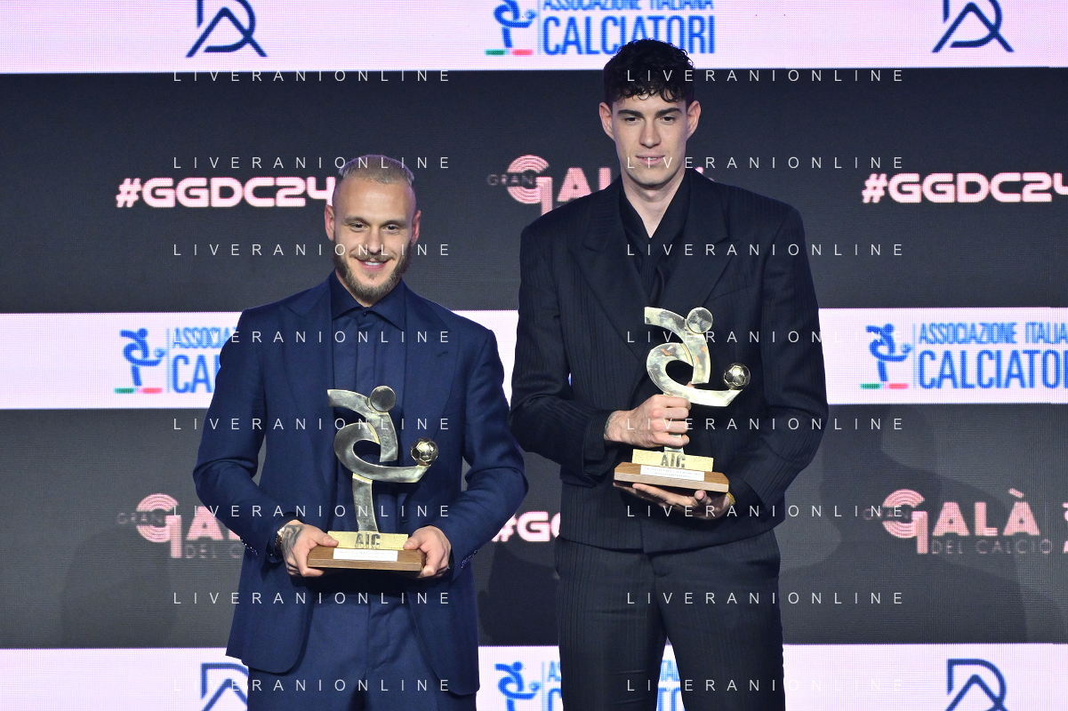 TVRG Gala Calcio 2024 nella foto Pio Esposito a SX premiato come miglior giovane della Serie B Milano 02-12-2024 Gran Gala del Calcio 2024, l'appuntamento organizzato dall'AIC Associazione Italiana Calciatori per premiare i protagonisti della stagione 2023-2024 foto Roberto Garavaglia/ag. Aldo Liverani sas