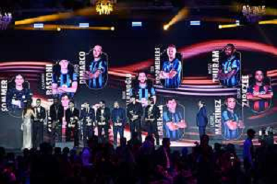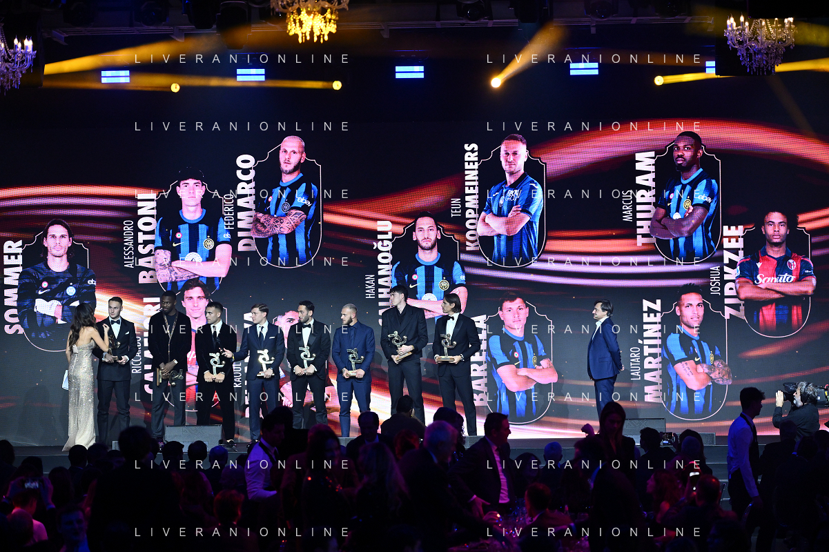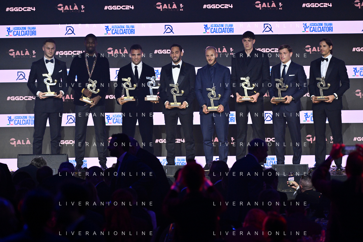 TVRG Gala Calcio 2024 nella foto la top 11 della scorsa stagione Milano 02-12-2024 Gran Gala del Calcio 2024, l'appuntamento organizzato dall'AIC Associazione Italiana Calciatori per premiare i protagonisti della stagione 2023-2024 foto Roberto Garavaglia/ag. Aldo Liverani sas