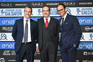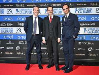 TVRG Gala Calcio 2024 nella foto da SX Emanuele Paolucci, Matteo Marani e Paolo Bedin Milano 02-12-2024 Gran Gala del Calcio 2024, l'appuntamento organizzato dall'AIC Associazione Italiana Calciatori per premiare i protagonisti della stagione 2023-2024 foto Roberto Garavaglia/ag. Aldo Liverani sas