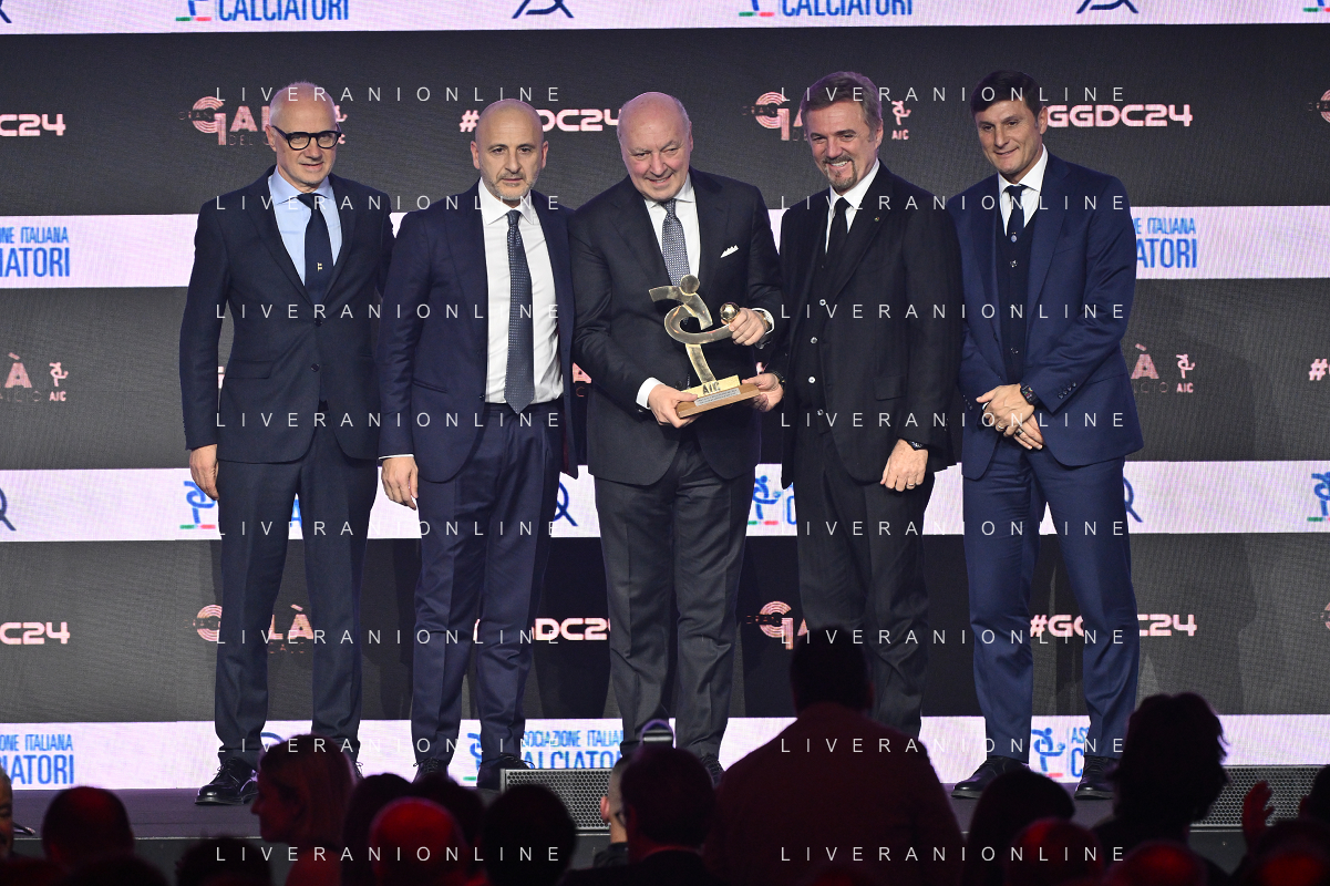 TVRG Gala Calcio 2024 nella foto premiazione Inter come miglior società dell'anno, a SX Giuseppe Marotta presidente Inter Milano 02-12-2024 Gran Gala del Calcio 2024, l'appuntamento organizzato dall'AIC Associazione Italiana Calciatori per premiare i protagonisti della stagione 2023-2024 foto Roberto Garavaglia/ag. Aldo Liverani sas