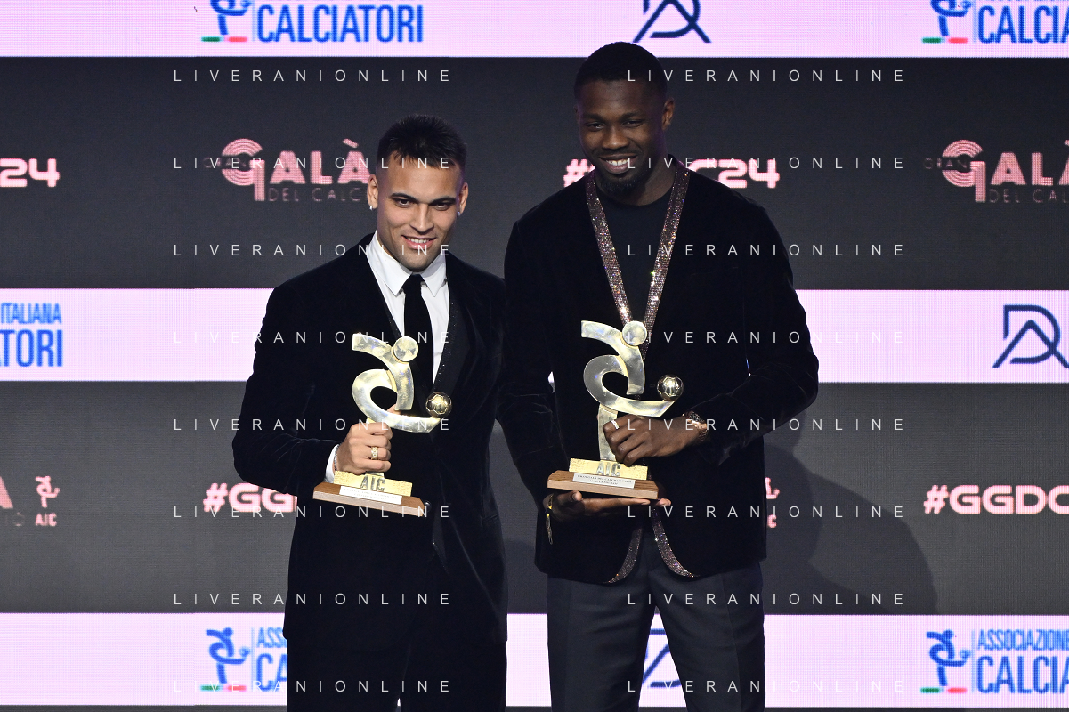 TVRG Gala Calcio 2024 nella foto premiazioni migliori attaccanti, Lautaro Martinez (Inter) e Marcus Thuram (Inter) Milano 02-12-2024 Gran Gala del Calcio 2024, l'appuntamento organizzato dall'AIC Associazione Italiana Calciatori per premiare i protagonisti della stagione 2023-2024 foto Roberto Garavaglia/ag. Aldo Liverani sas