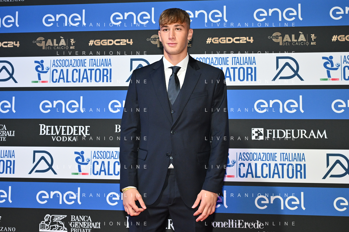 TVRG Gala Calcio 2024 nella foto Francesco Pio Esposito (Spezia) Milano 02-12-2024 Gran Gala del Calcio 2024, l'appuntamento organizzato dall'AIC Associazione Italiana Calciatori per premiare i protagonisti della stagione 2023-2024 foto Roberto Garavaglia/ag. Aldo Liverani sas