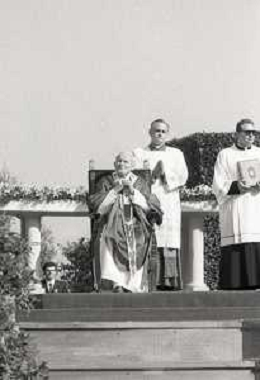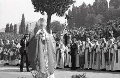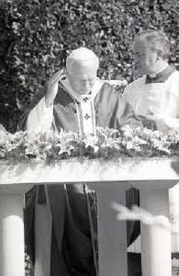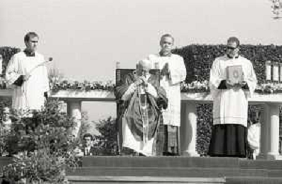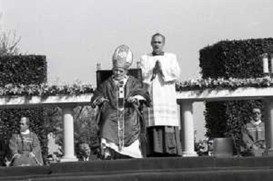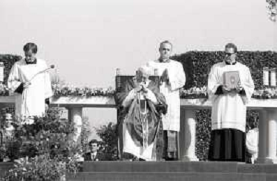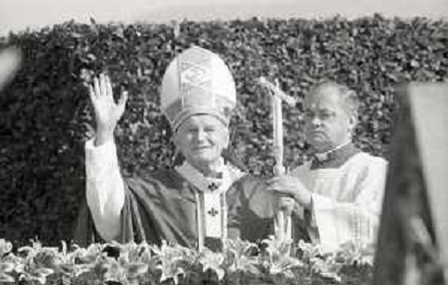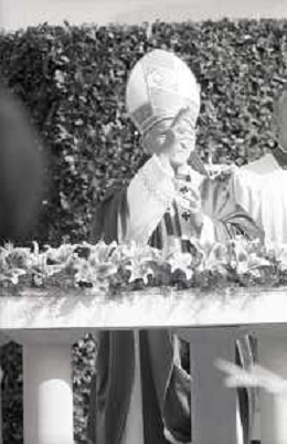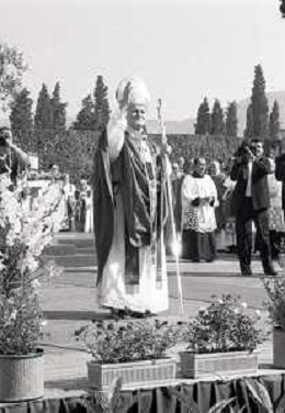 NEG-18-10-1986 FIRENZE -RETROSPETTIVA PAPA GIOVANNI II -KAROL JOZEF WOJTYLA NELLA FOTO PAPA GIOVANNI II -KAROL JOZEF WOJTYLA A FIRENZE FIESOLE TEATRO ROMANO IL GIORNO 18-10-1986 AG ALDO LIVERANI SAS