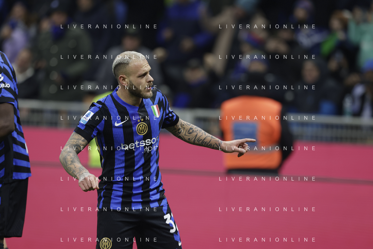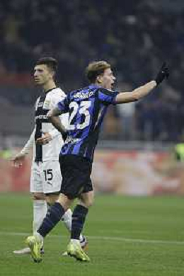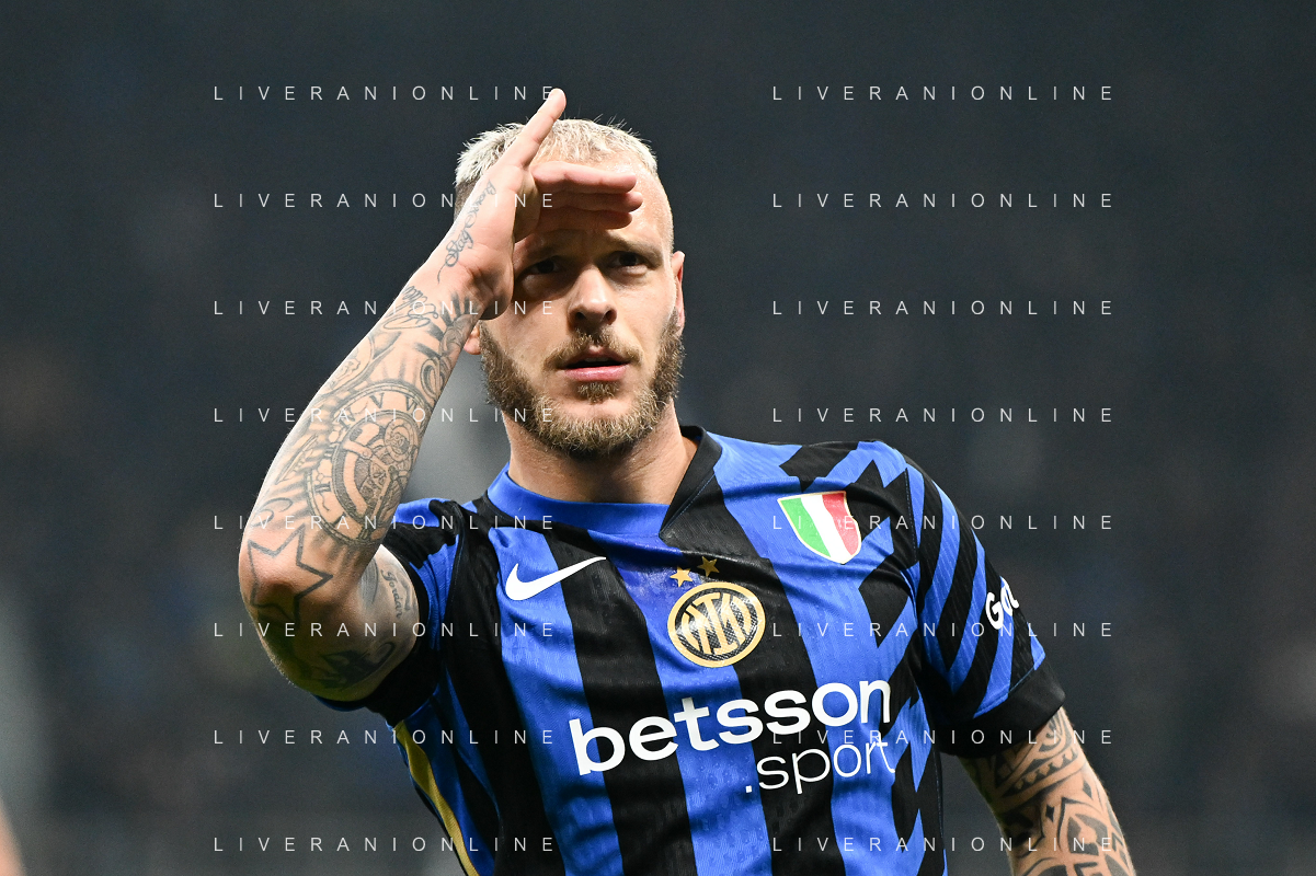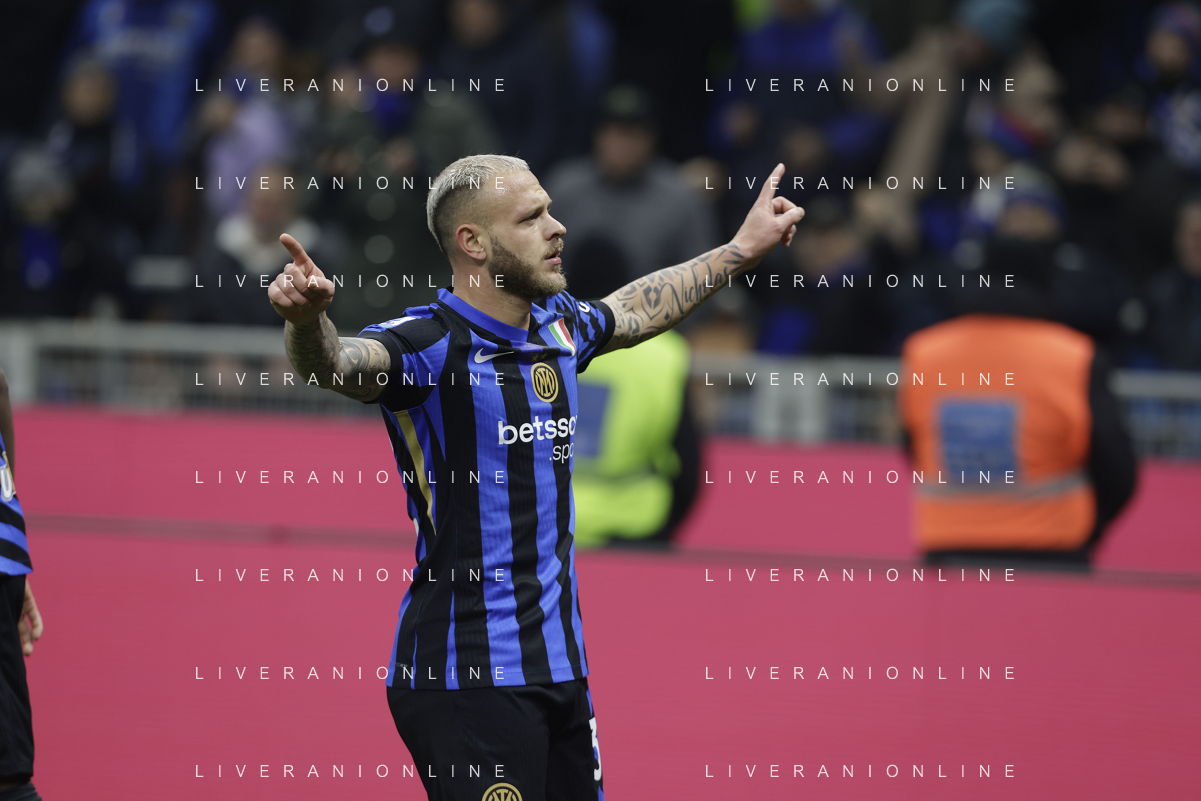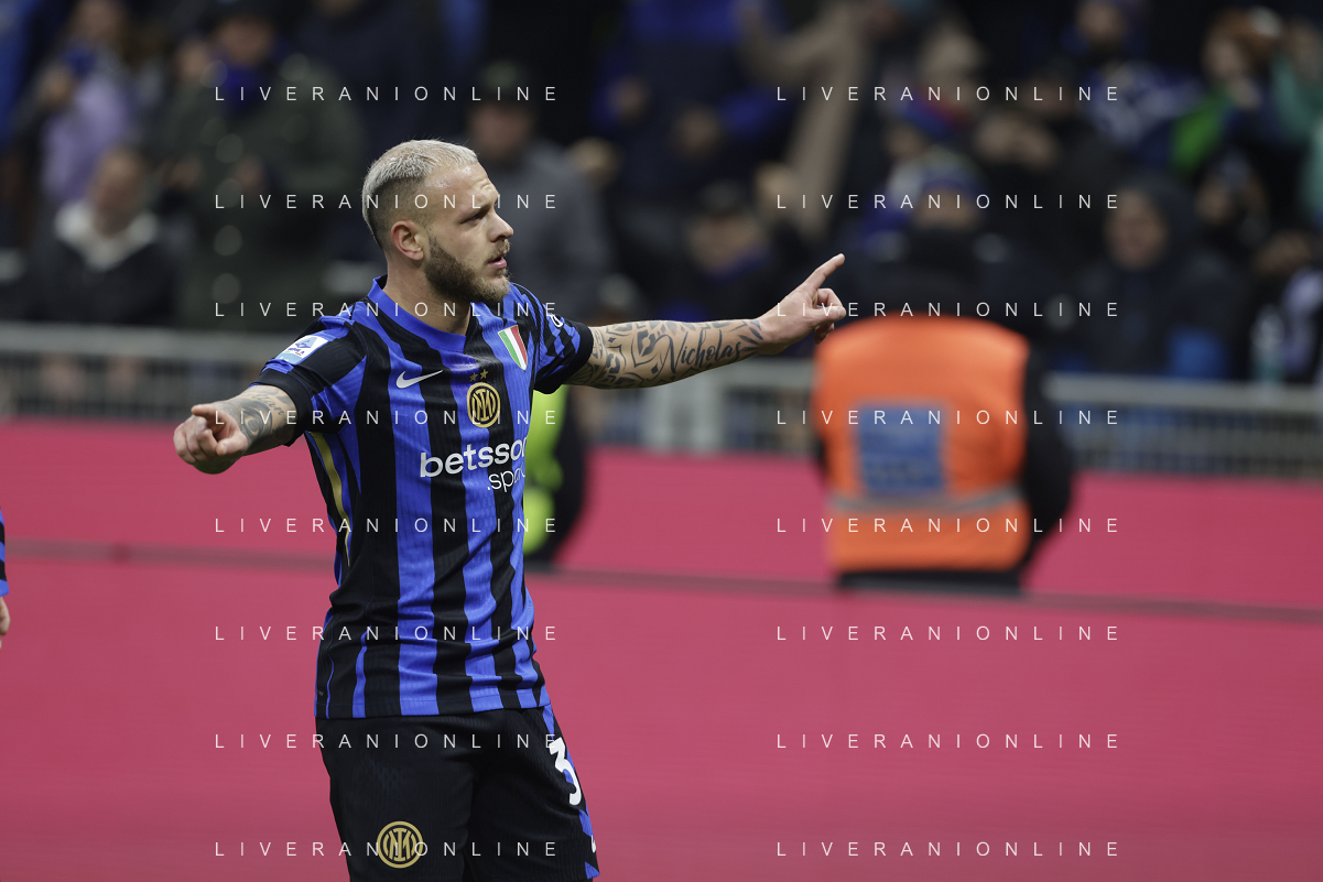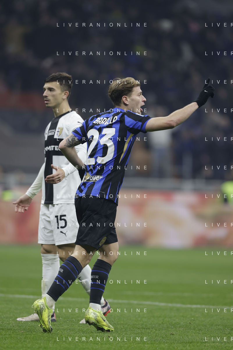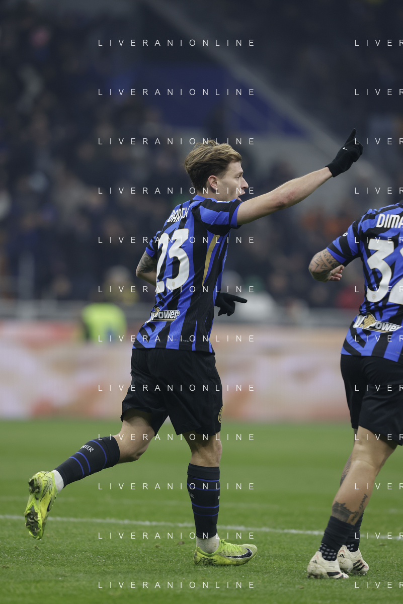 Inter FC vs Parma Calcio 1913 nella foto Federico Dimarco (Inter) esulta dopo il gol del 1 a 0 Milano 06-12-2024 Stadio Giuseppe Meazza - San Siro Campionato Serie A TIM - 15ma giornata foto Tiziano Ballabio/Agenzia Aldo Liverani sas- AGENZIA ALDO LIVERANI SAS