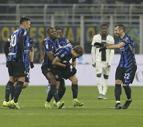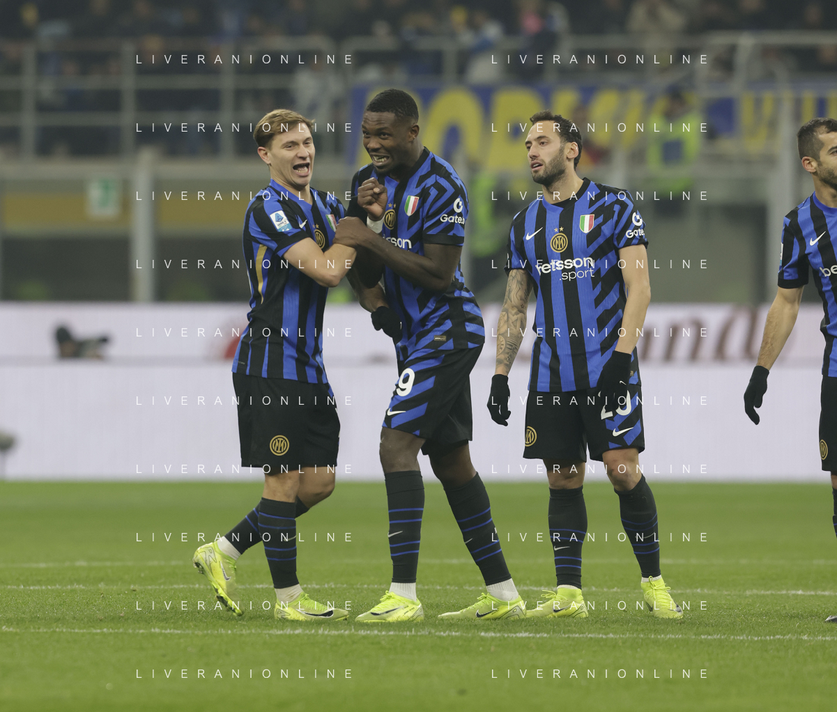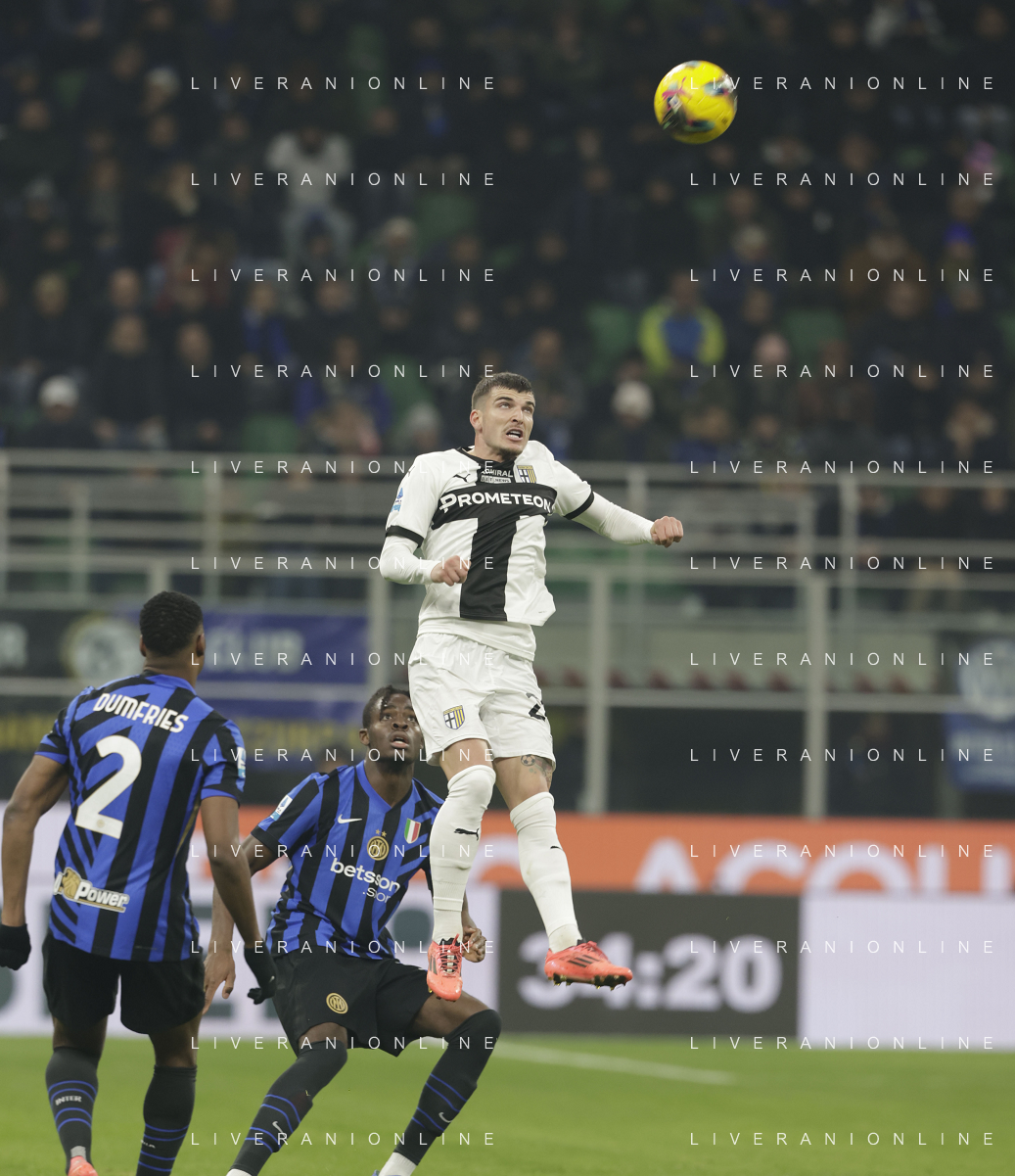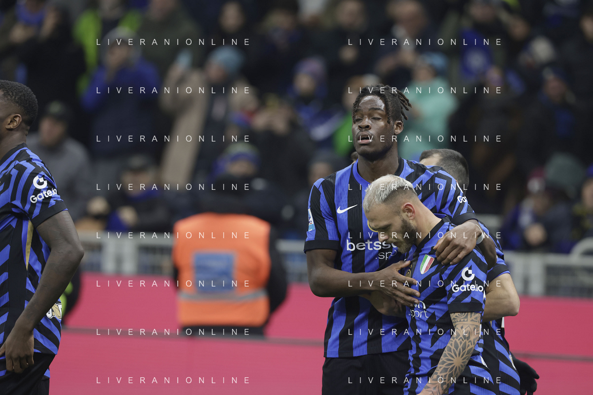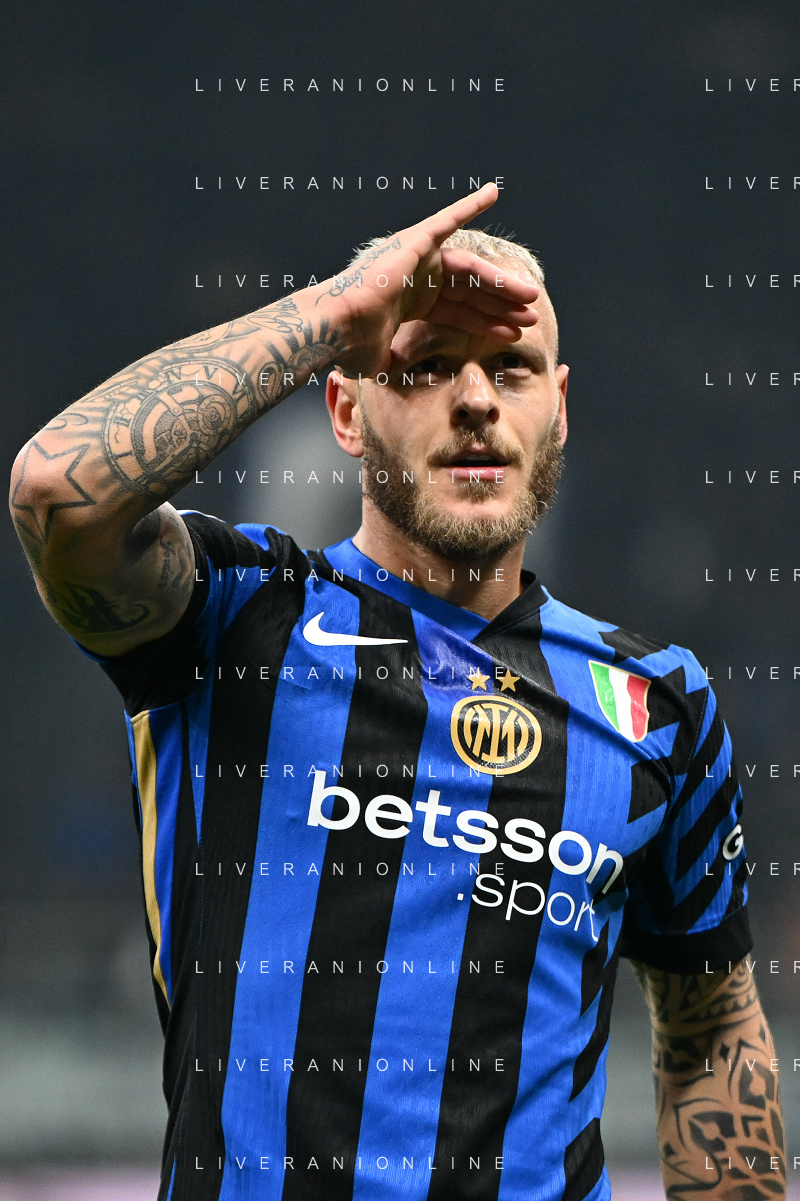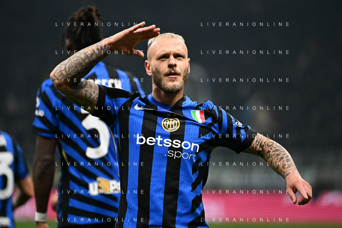 Inter FC vs Parma Calcio 1913 nella foto Federico Dimarco (Inter) esulta dopo il gol del 1 a 0 Milano 06-12-2024 Stadio Giuseppe Meazza - San Siro Campionato Serie A TIM - 15ma giornata foto Tiziano Ballabio/Agenzia Aldo Liverani sas- AGENZIA ALDO LIVERANI SAS